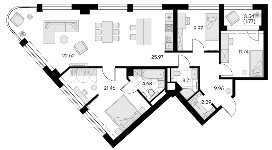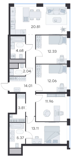 Четырехкомнатные квартиры (1 квартира, 1 планировка)