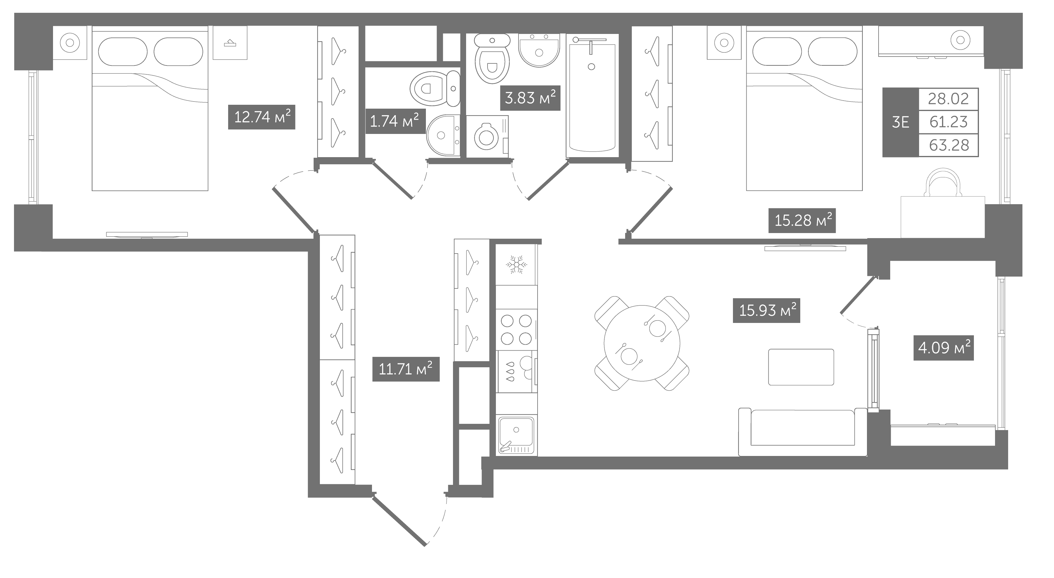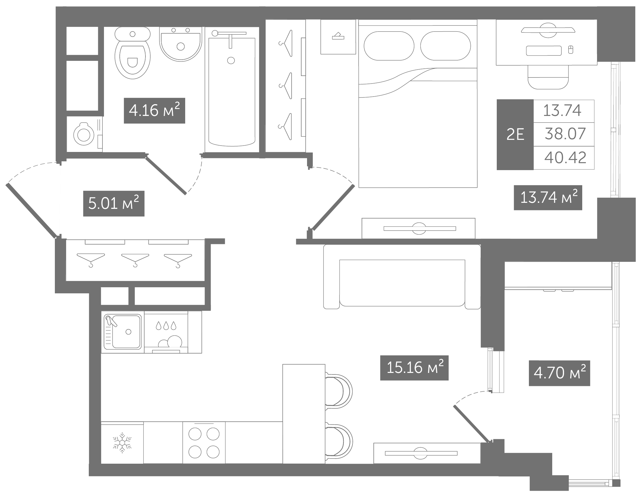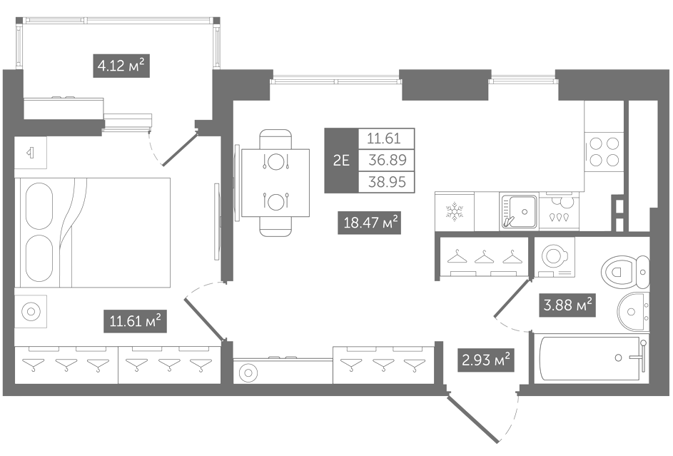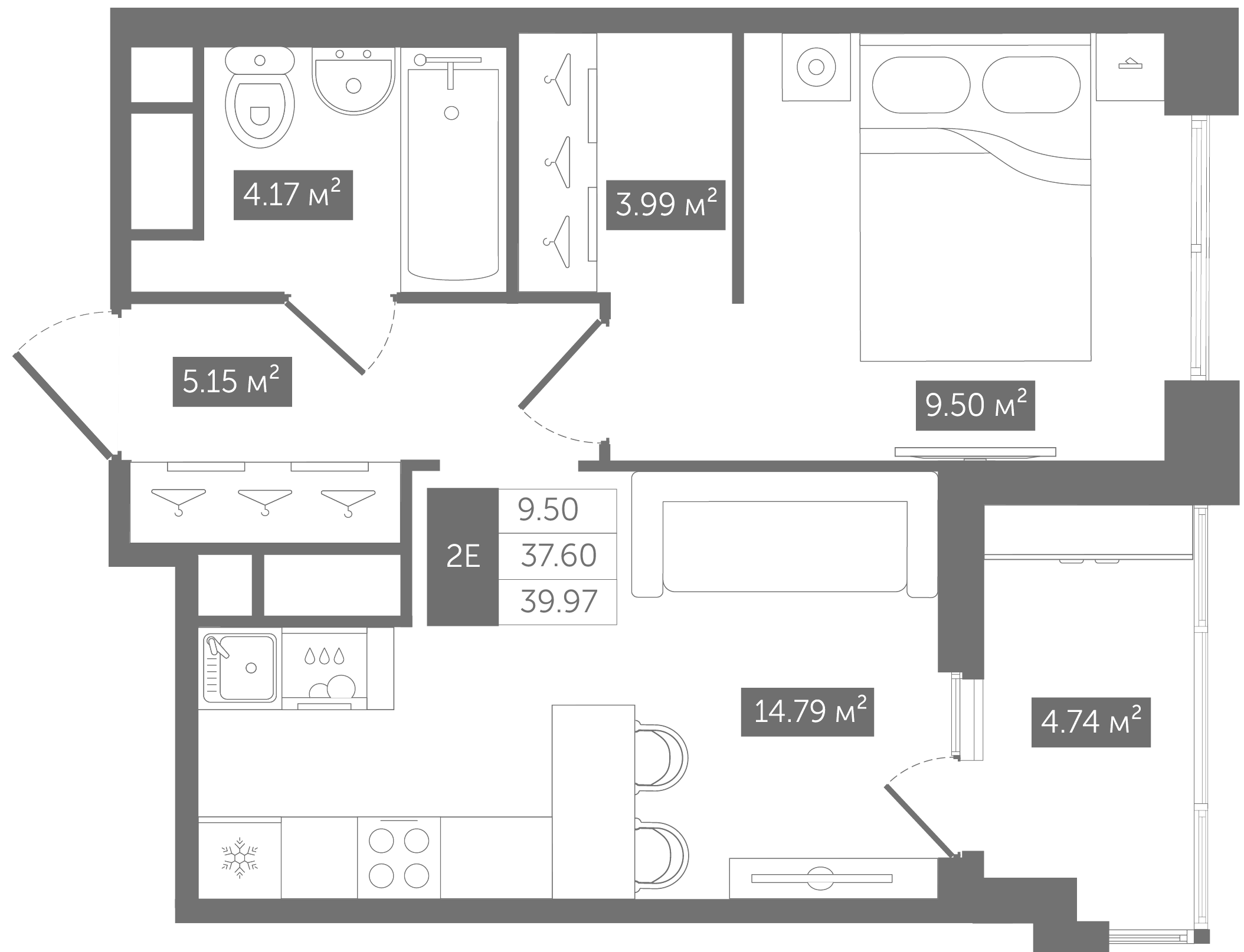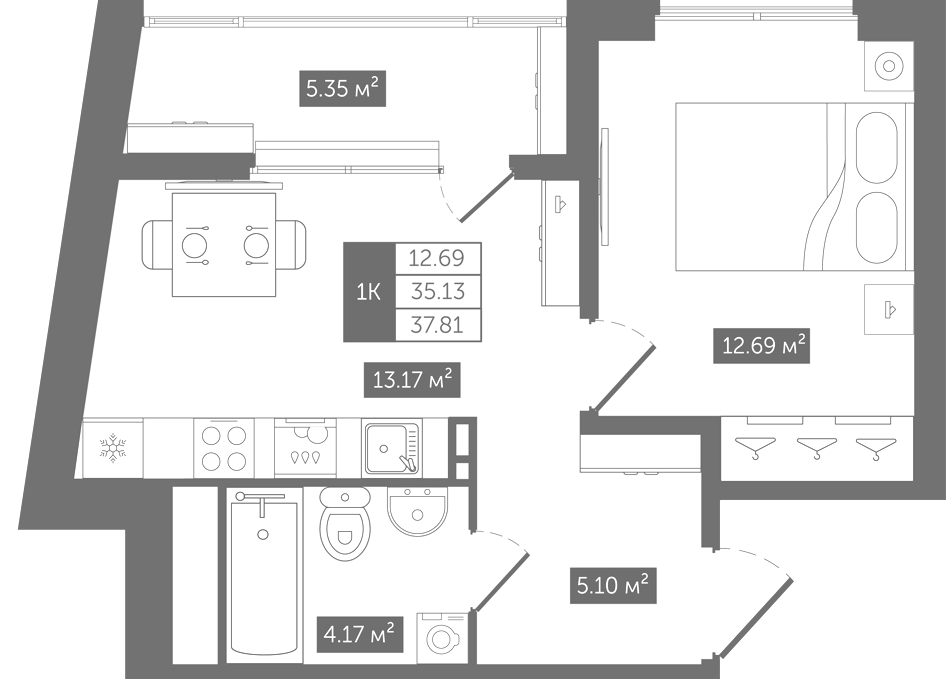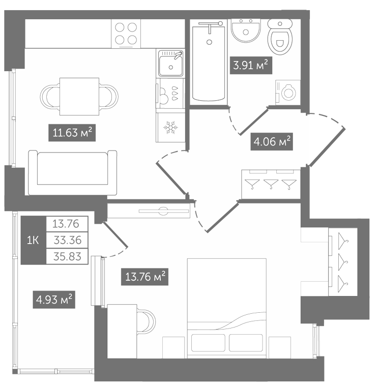 Однокомнатные квартиры (63 квартиры, 28 планировок)