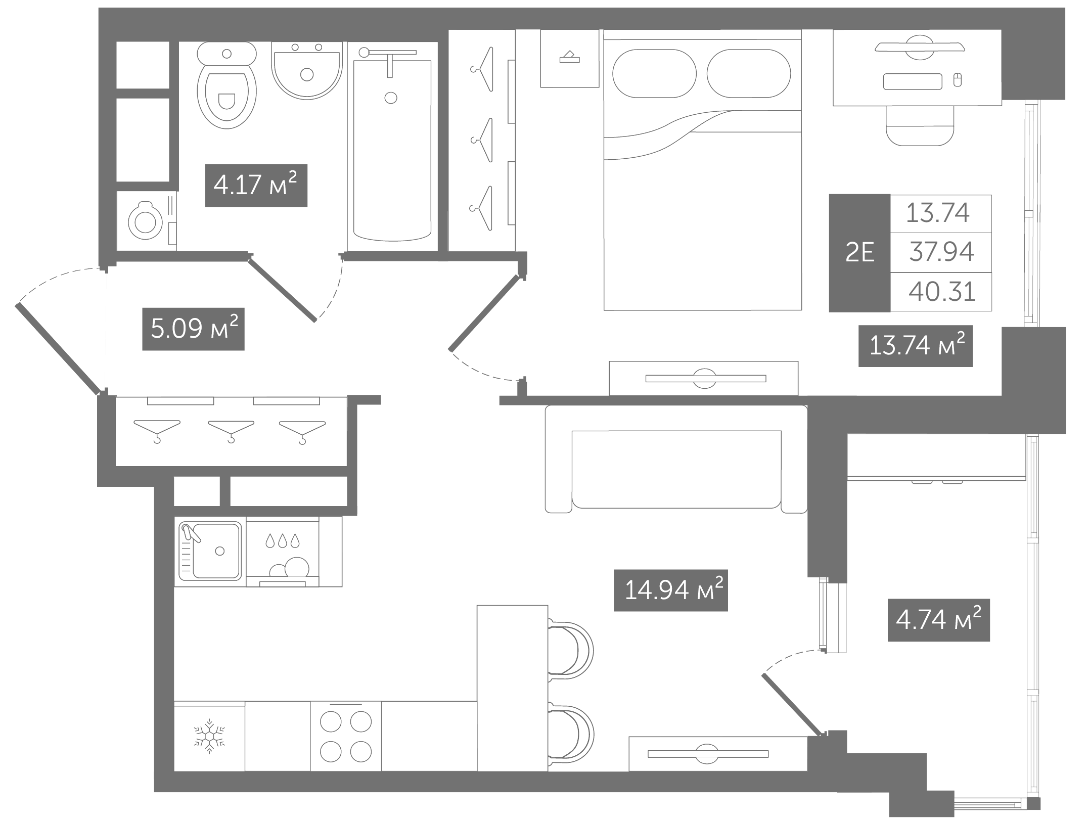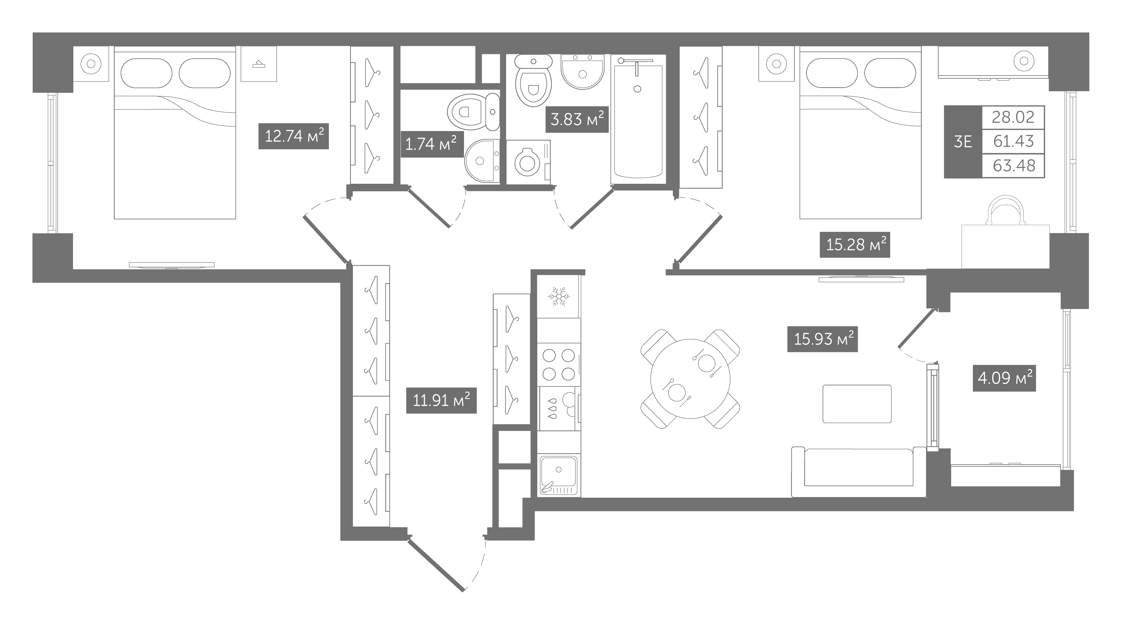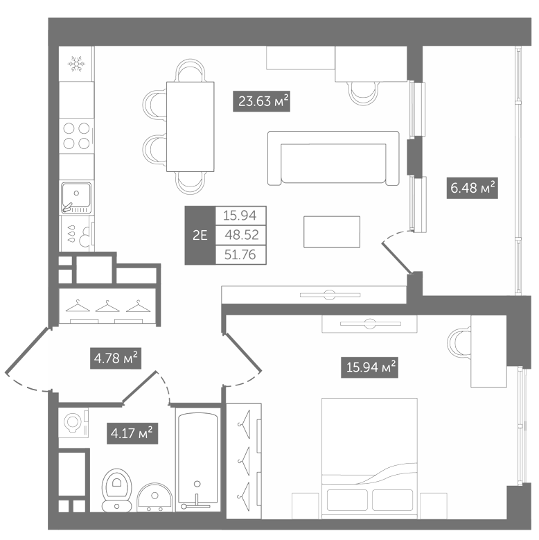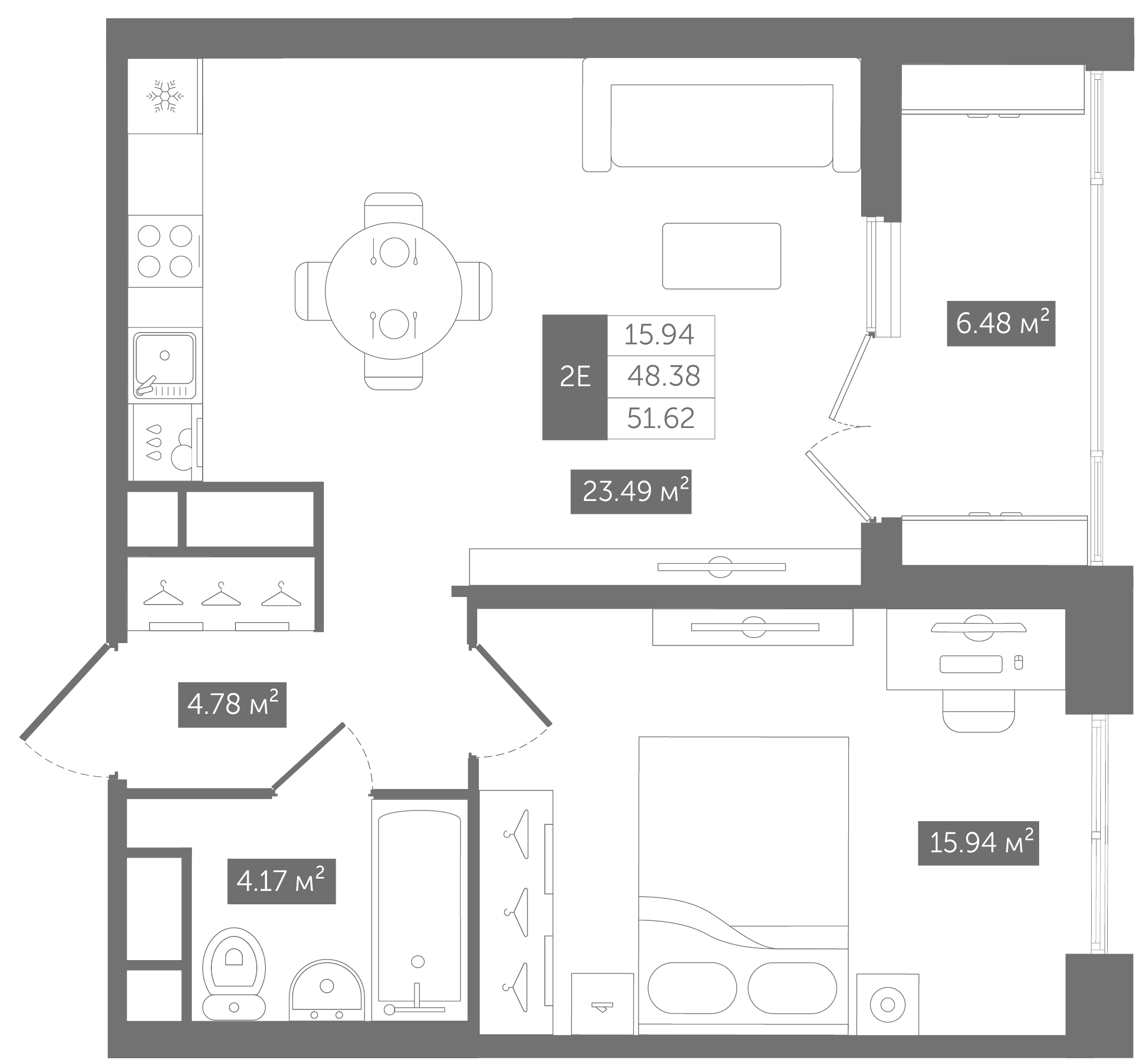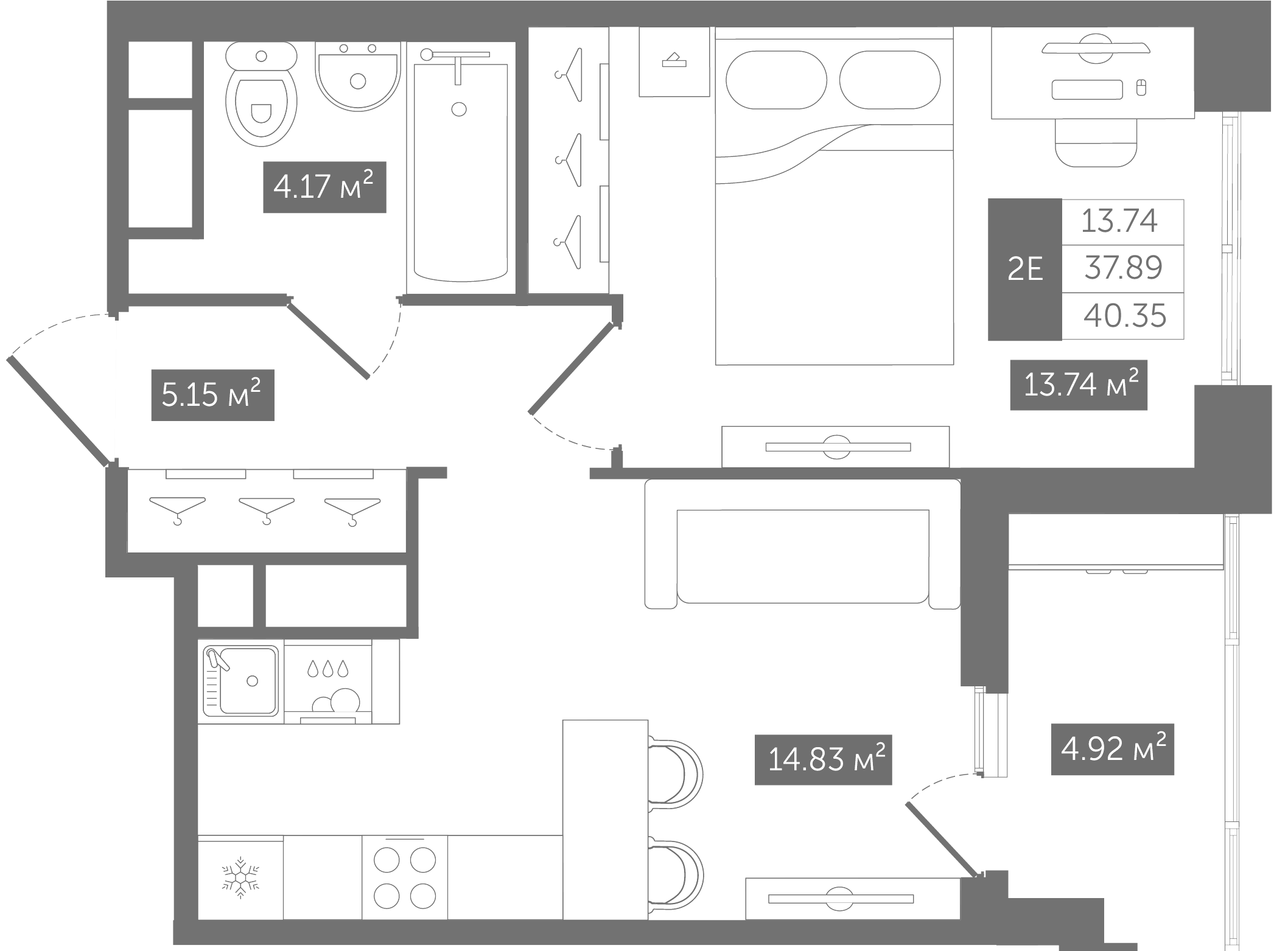 Однокомнатные квартиры (63 квартиры, 28 планировок)