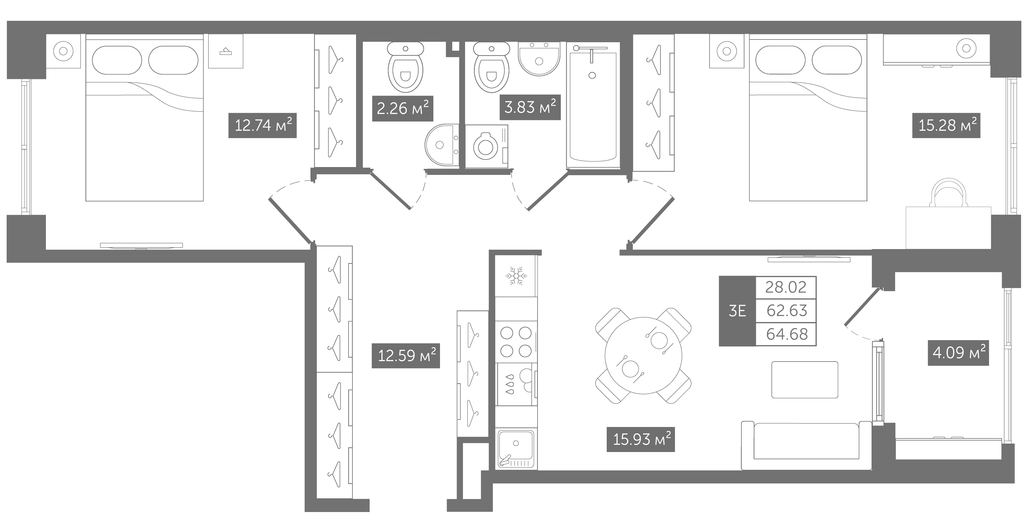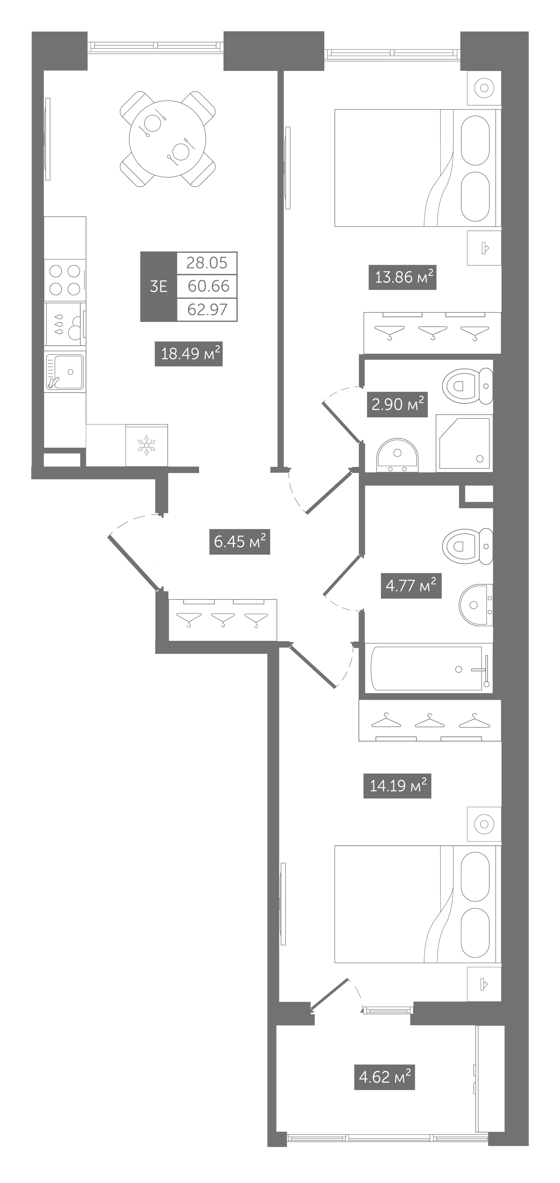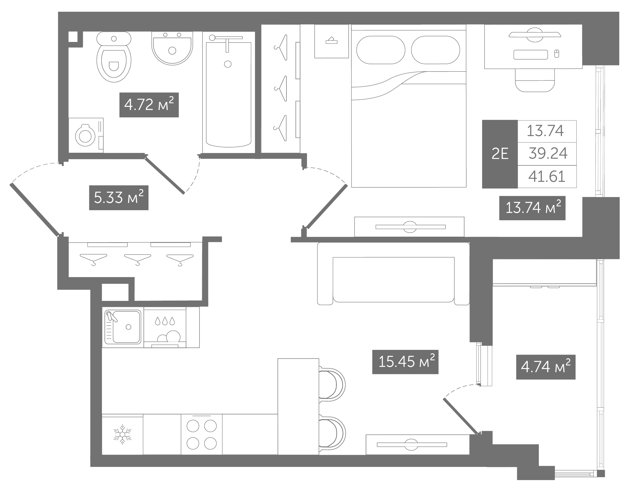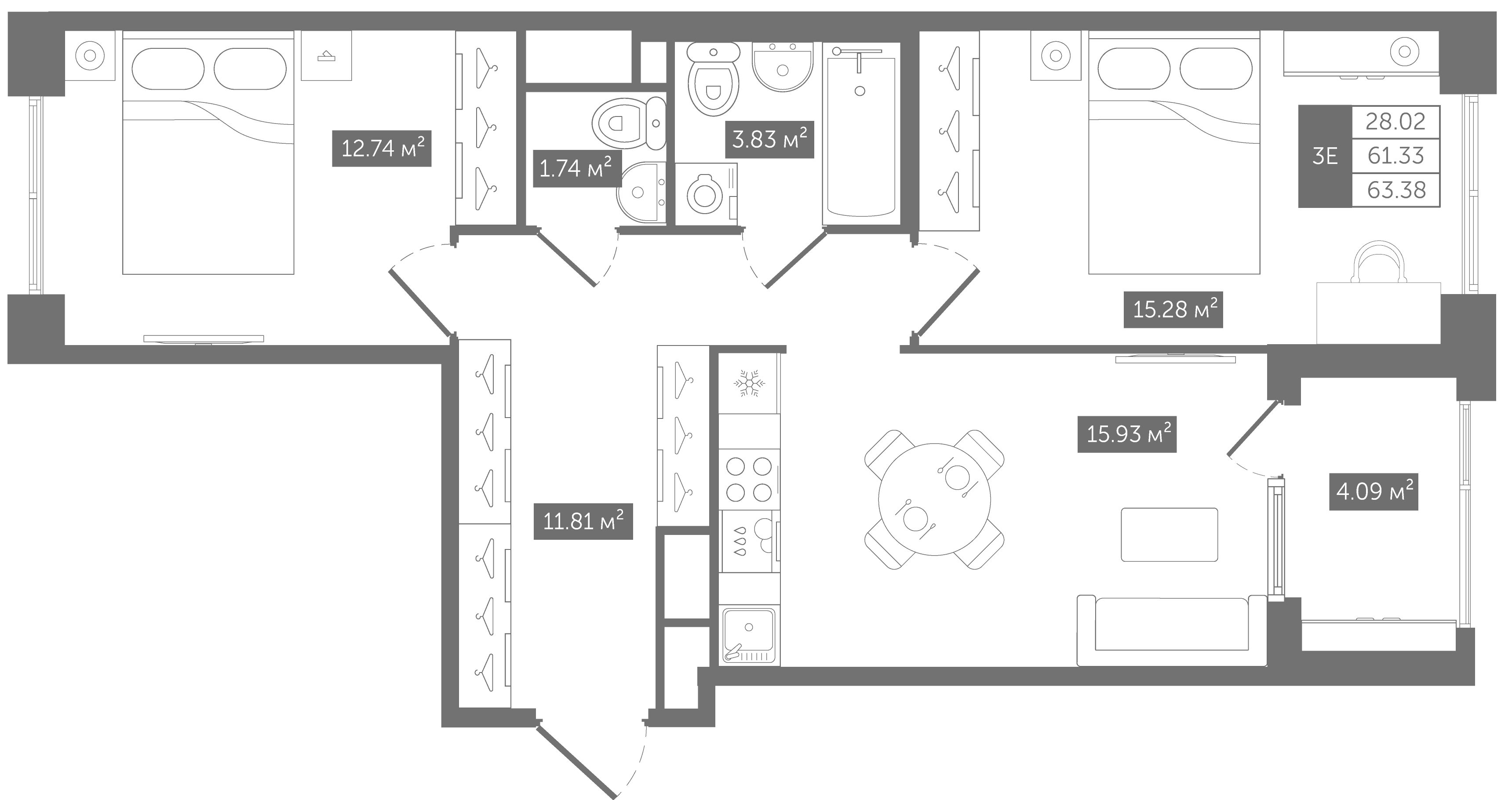 Однокомнатные квартиры (63 квартиры, 28 планировок)