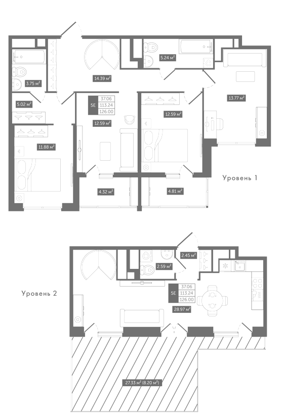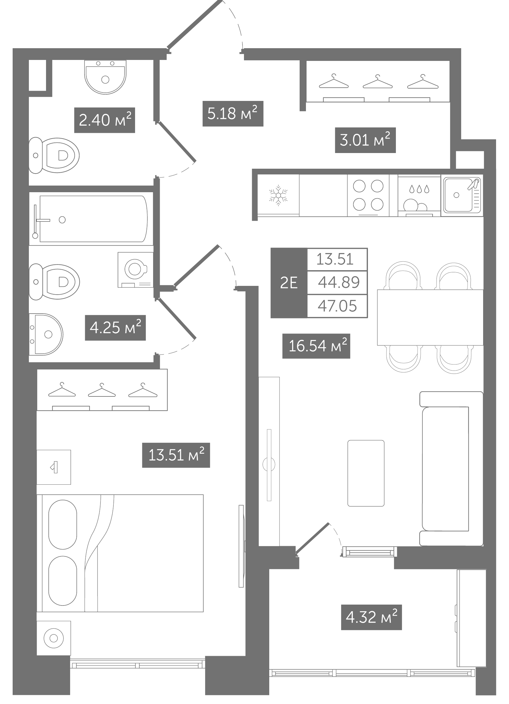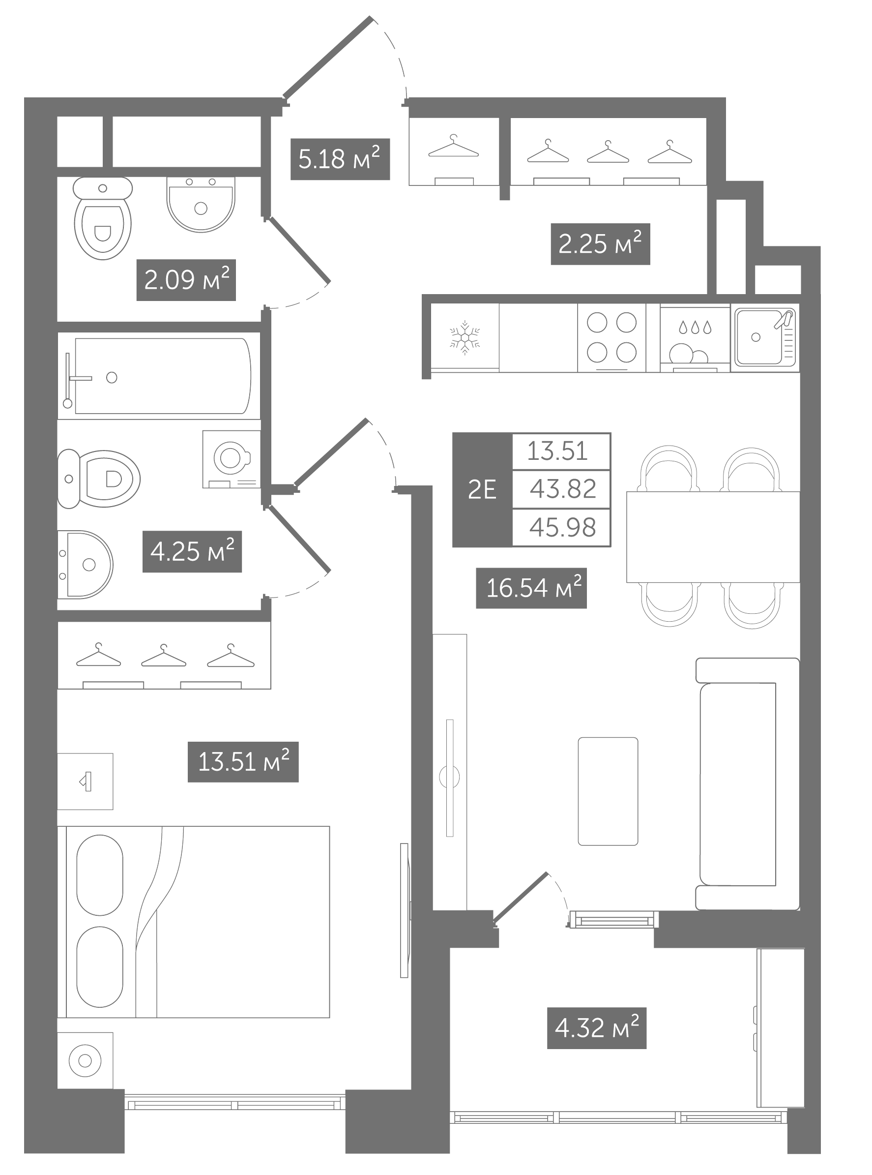 Двухкомнатные квартиры (45 квартир, 22 планировки)