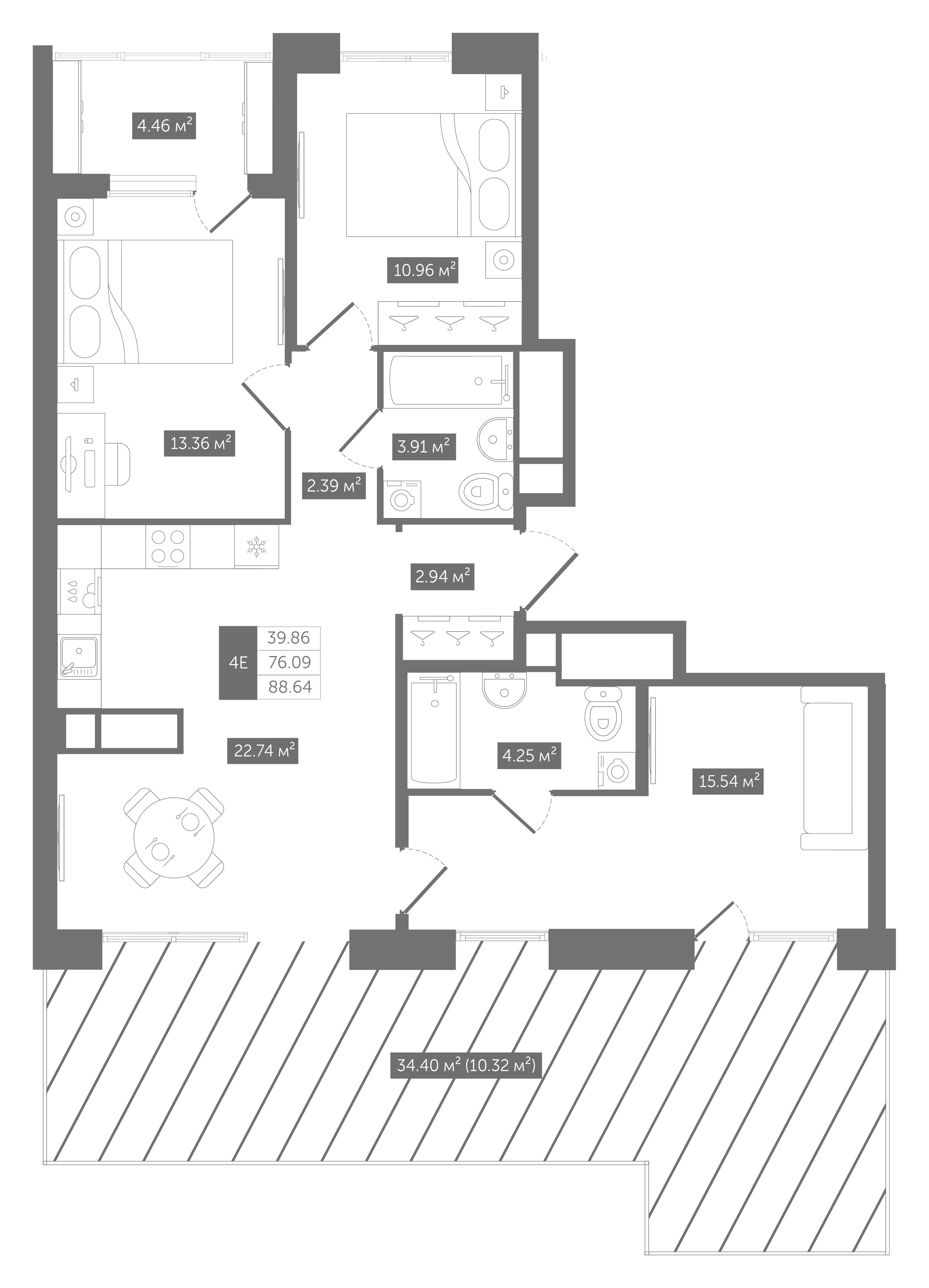 Четырехкомнатные квартиры (9 квартир, 4 планировки)