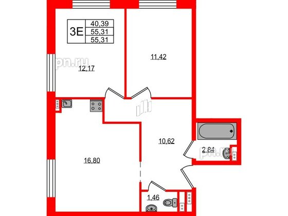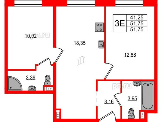 Трехкомнатные апартаменты (5 апартаментов, 5 планировок)