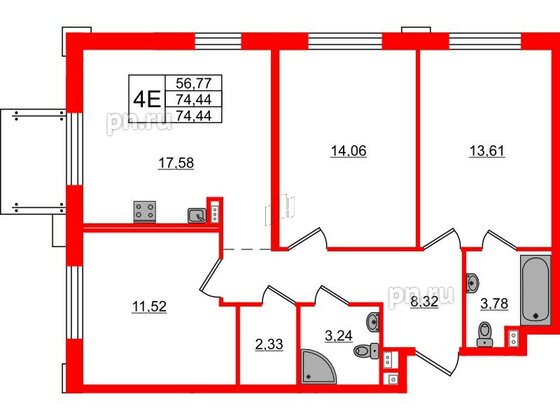 Четырехкомнатные апартаменты (2 апартаментов, 2 планировки)