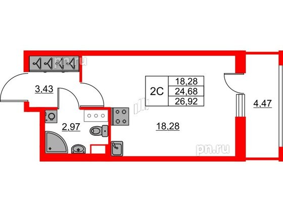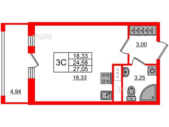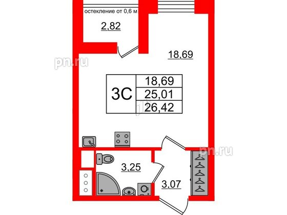 Студия (19 квартир, 19 планировок)