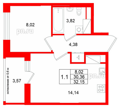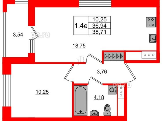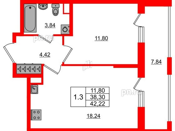 Однокомнатные квартиры (18 квартир, 18 планировок)