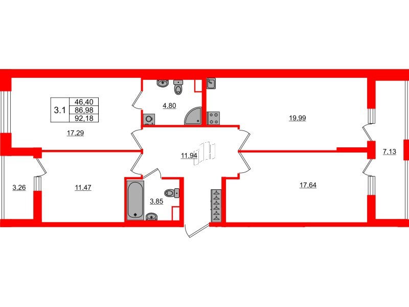 Трехкомнатные квартиры (3 квартиры, 3 планировки)