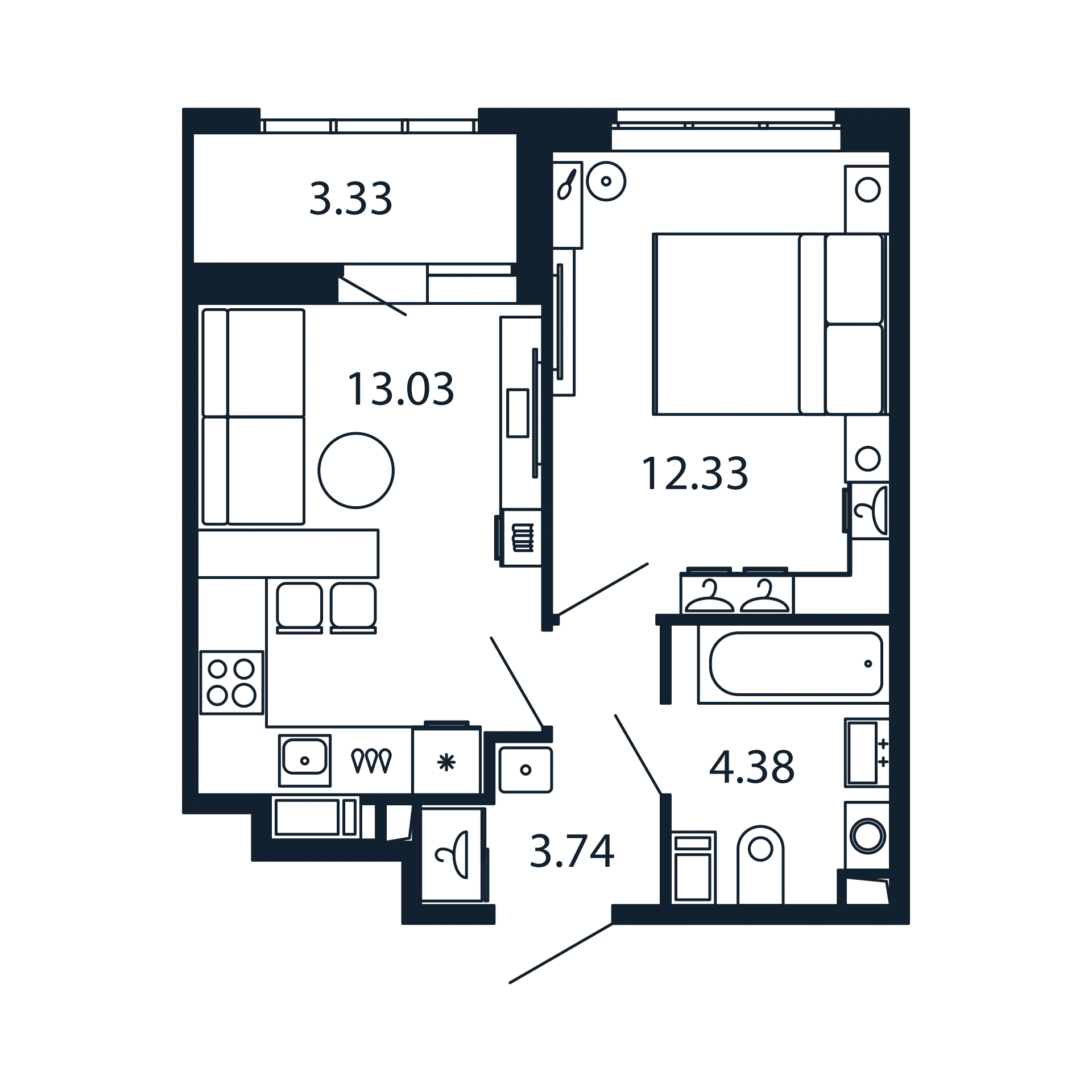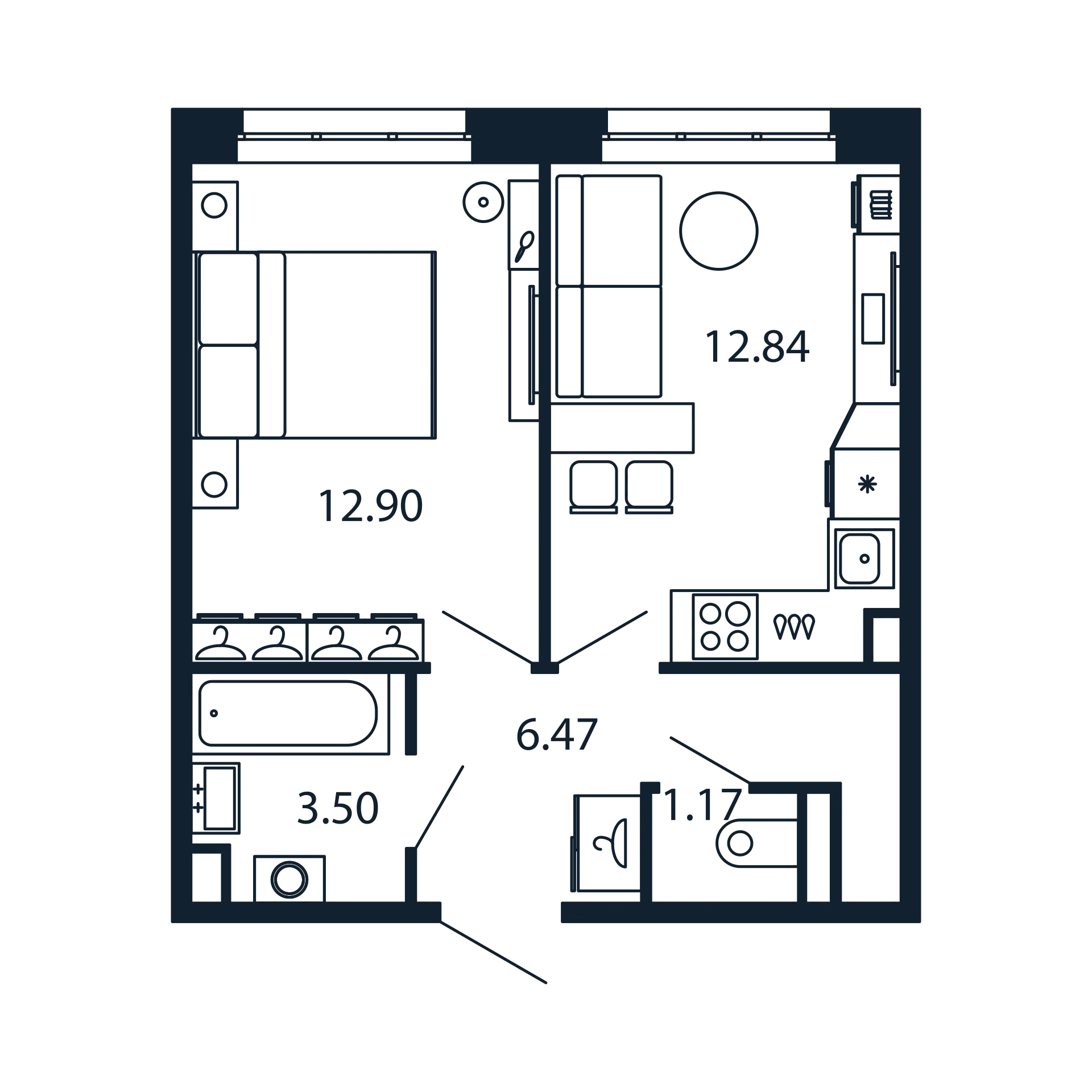 Однокомнатные квартиры (5 квартир, 5 планировок)