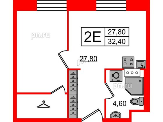 Однокомнатные апартаменты (2 апартаментов, 2 планировки)