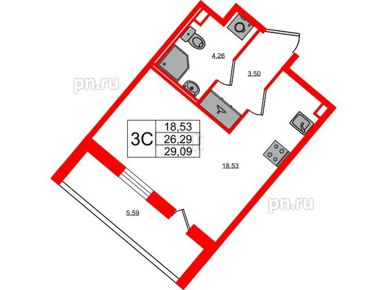 Студия (6 квартир, 6 планировок)