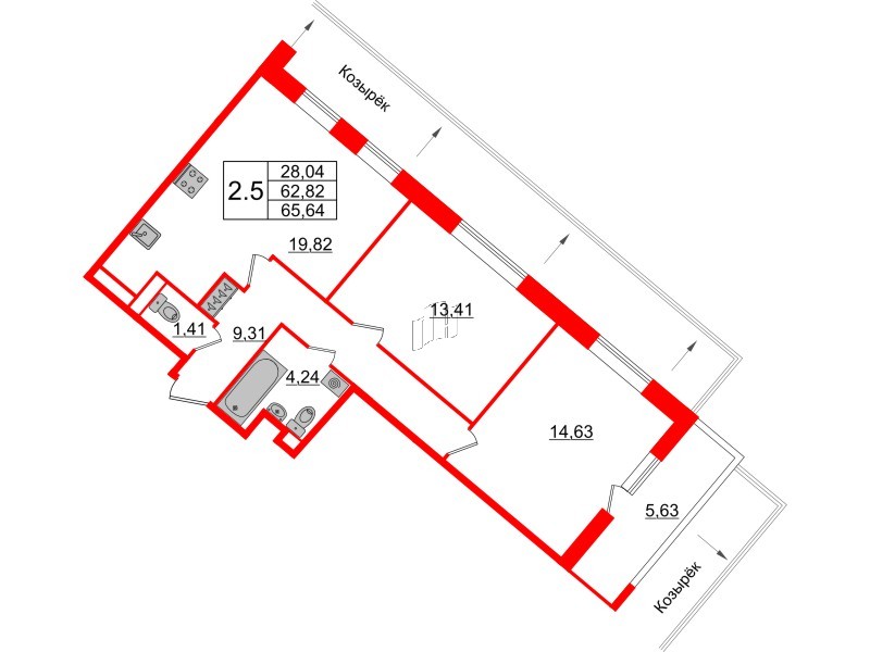 Двухкомнатные квартиры (3 квартиры, 3 планировки)