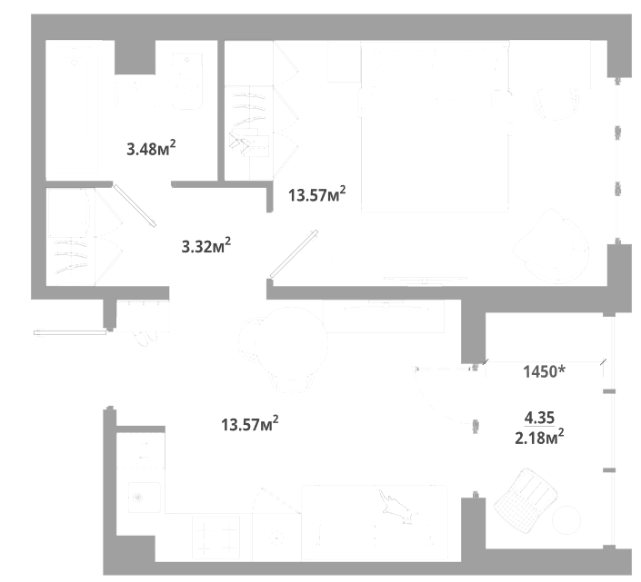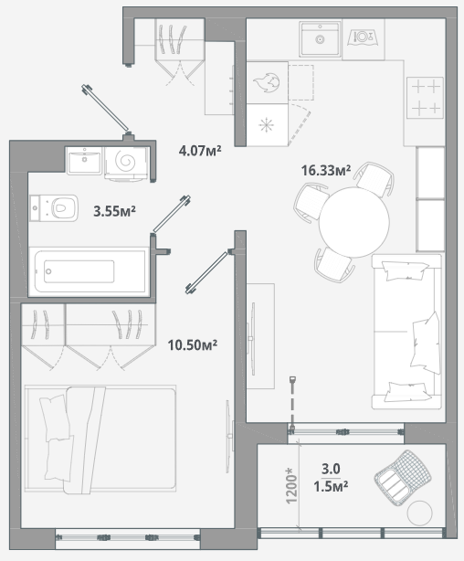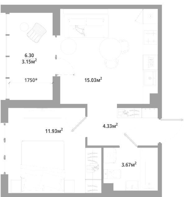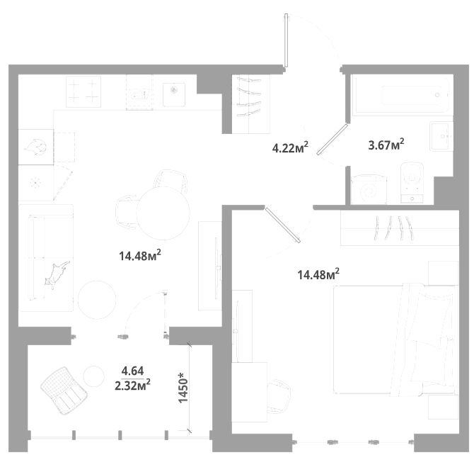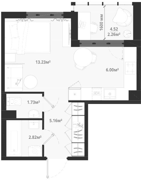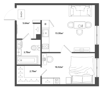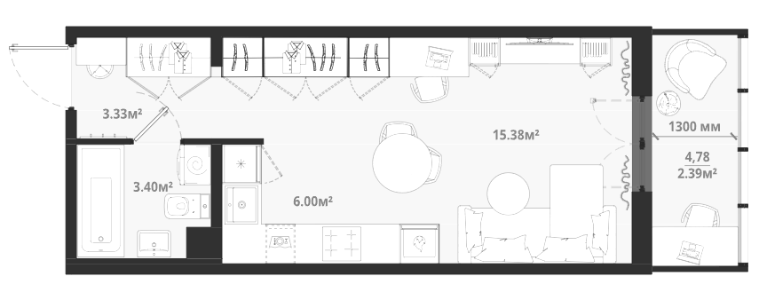 Однокомнатные квартиры (15 квартир, 15 планировок)