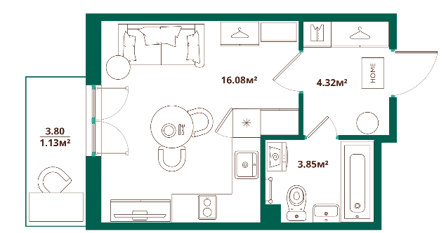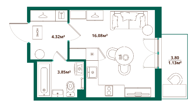 Студия (9 квартир, 9 планировок)
