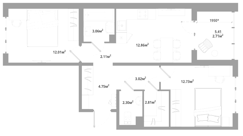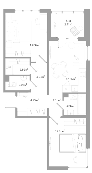 Двухкомнатные квартиры (13 квартир, 11 планировок)