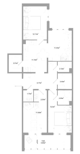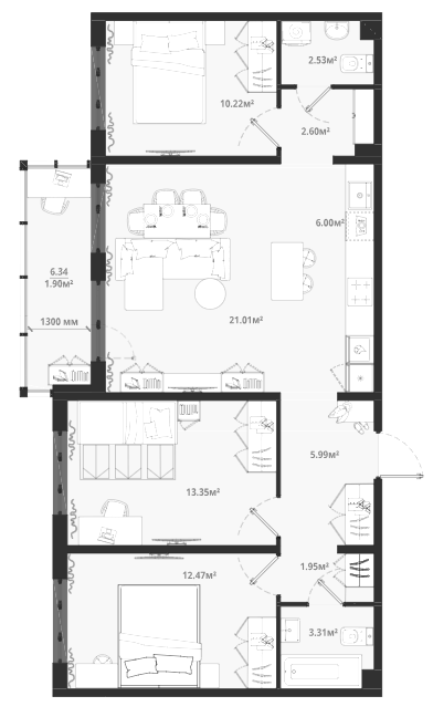 Трехкомнатные квартиры (5 квартир, 5 планировок)