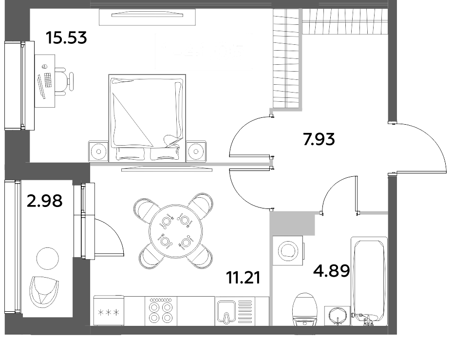 Однокомнатные квартиры (41 квартира, 35 планировок)