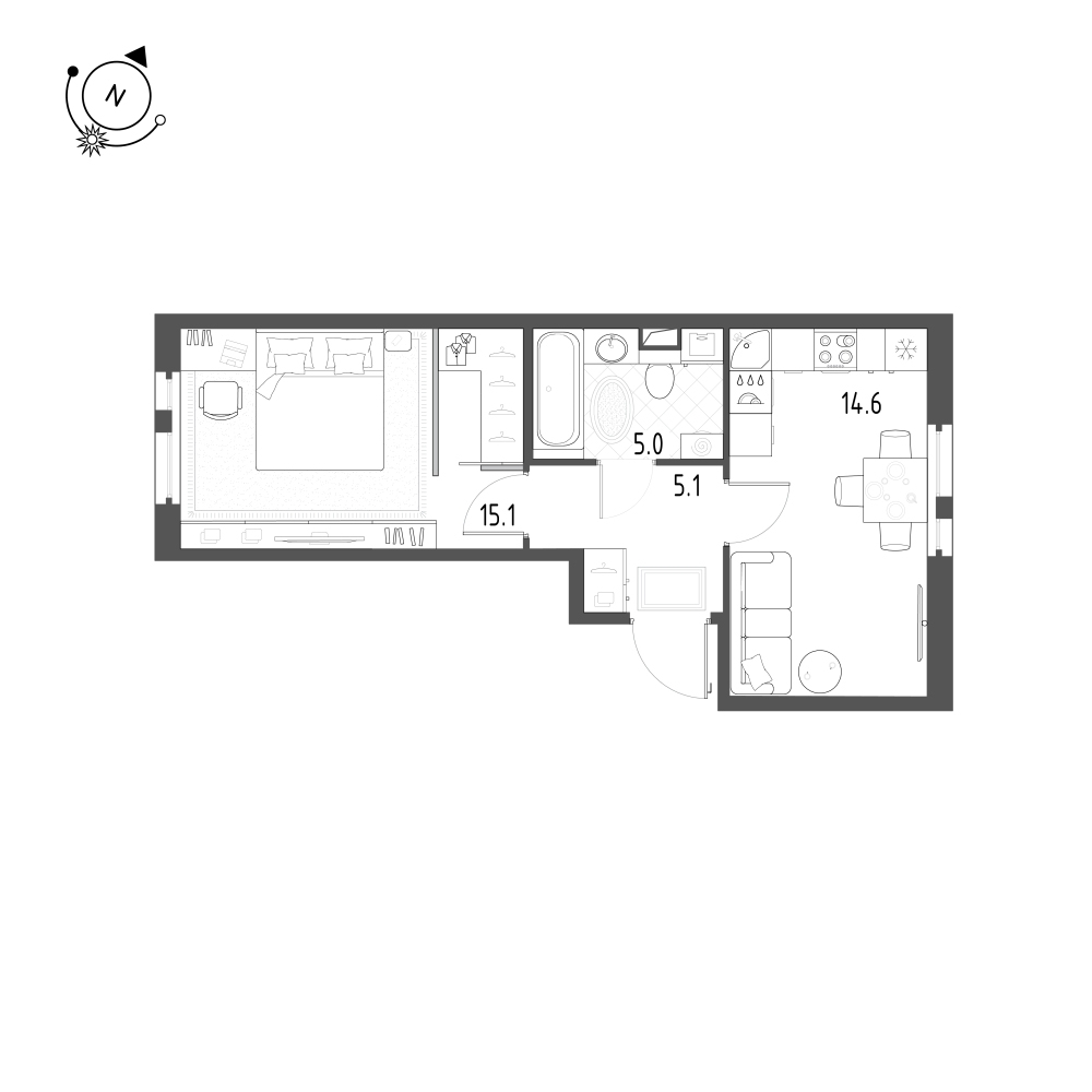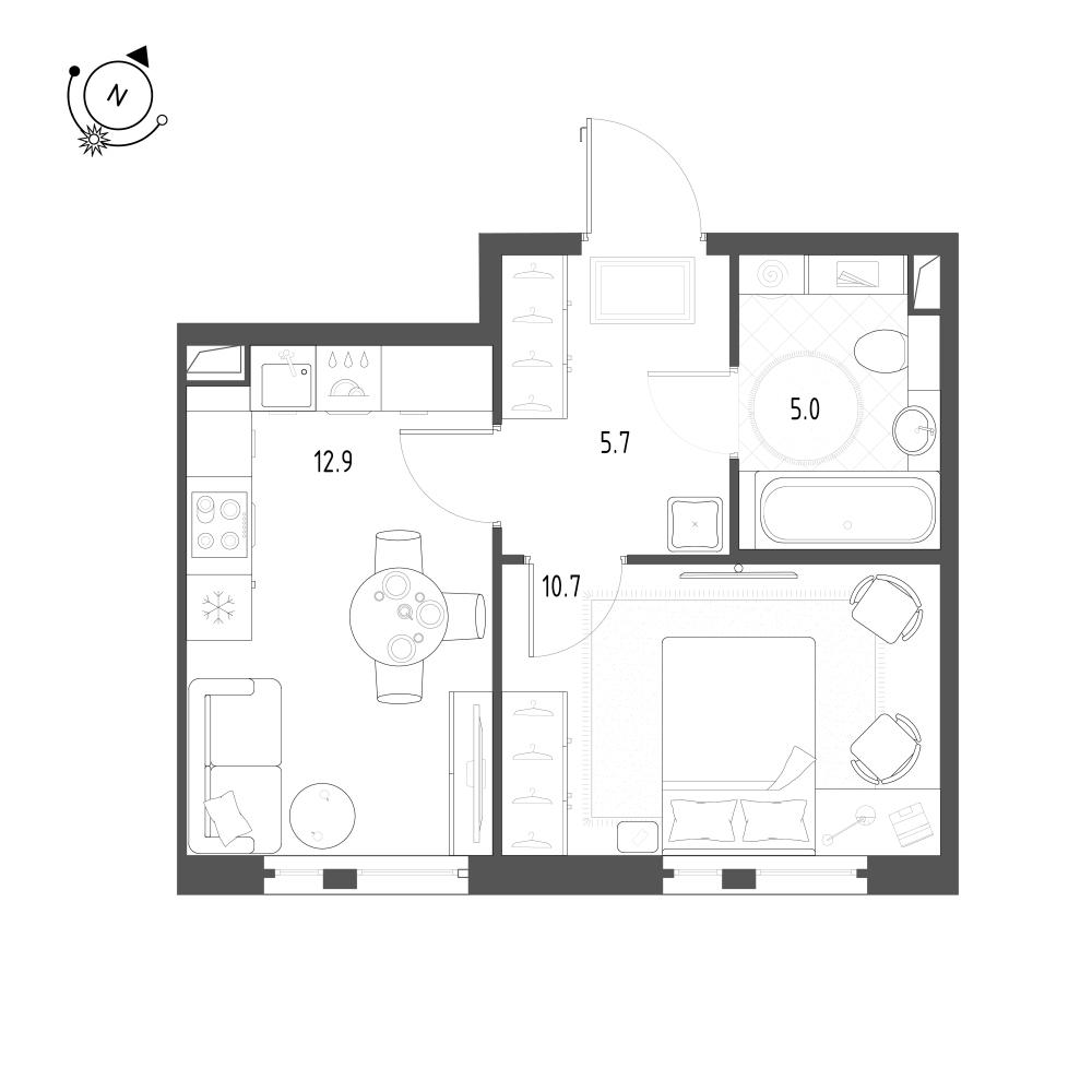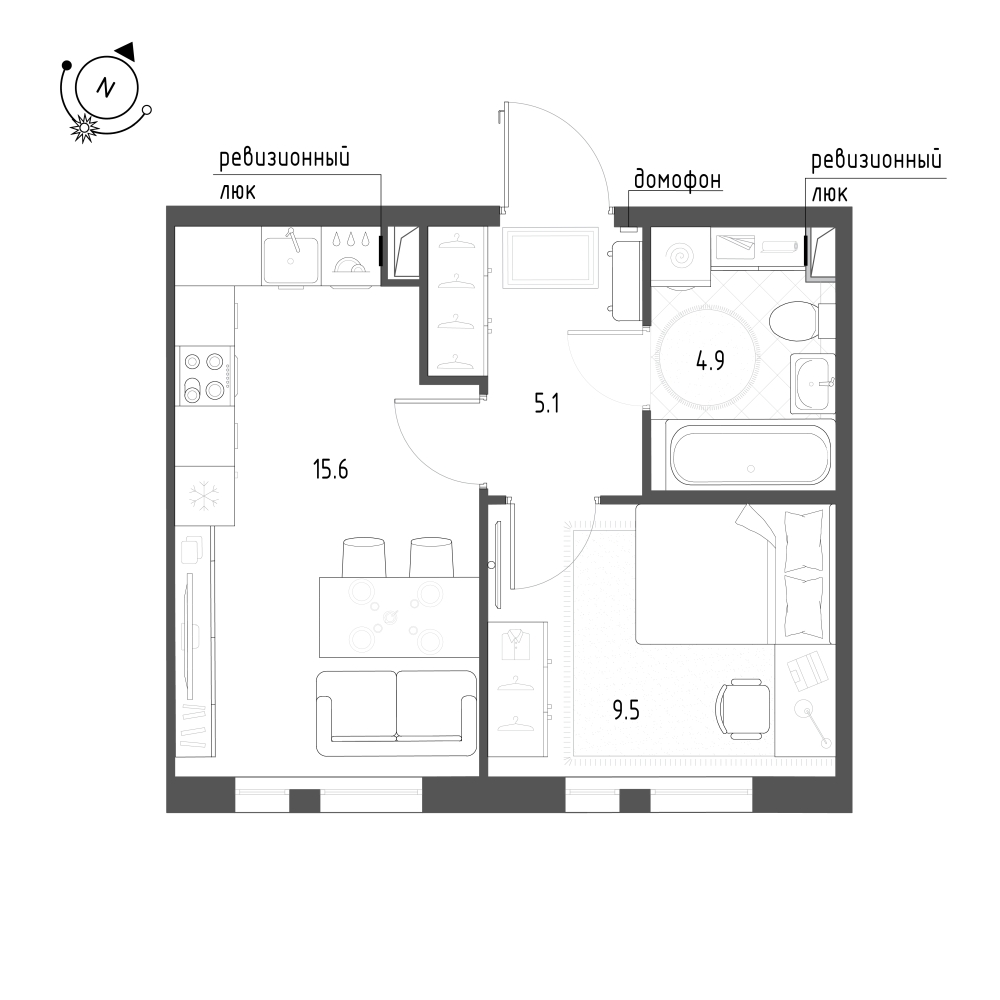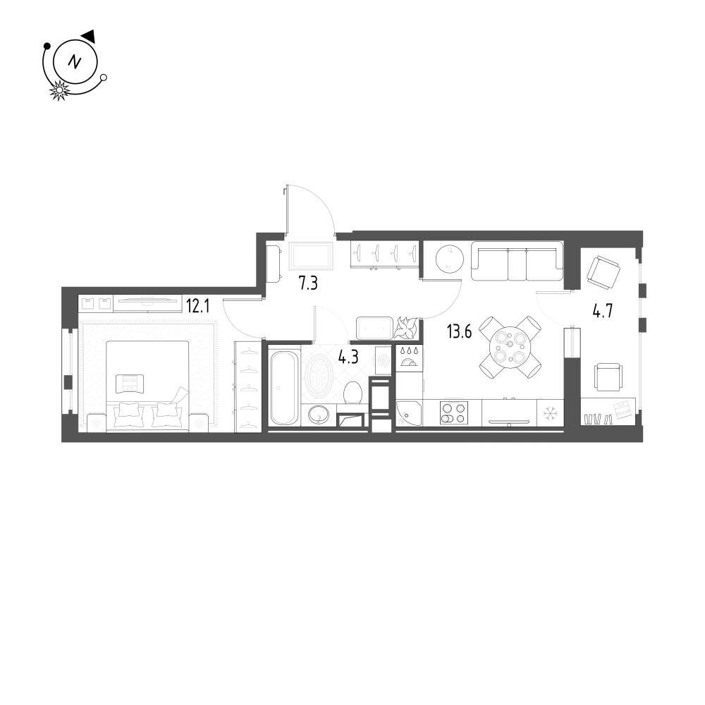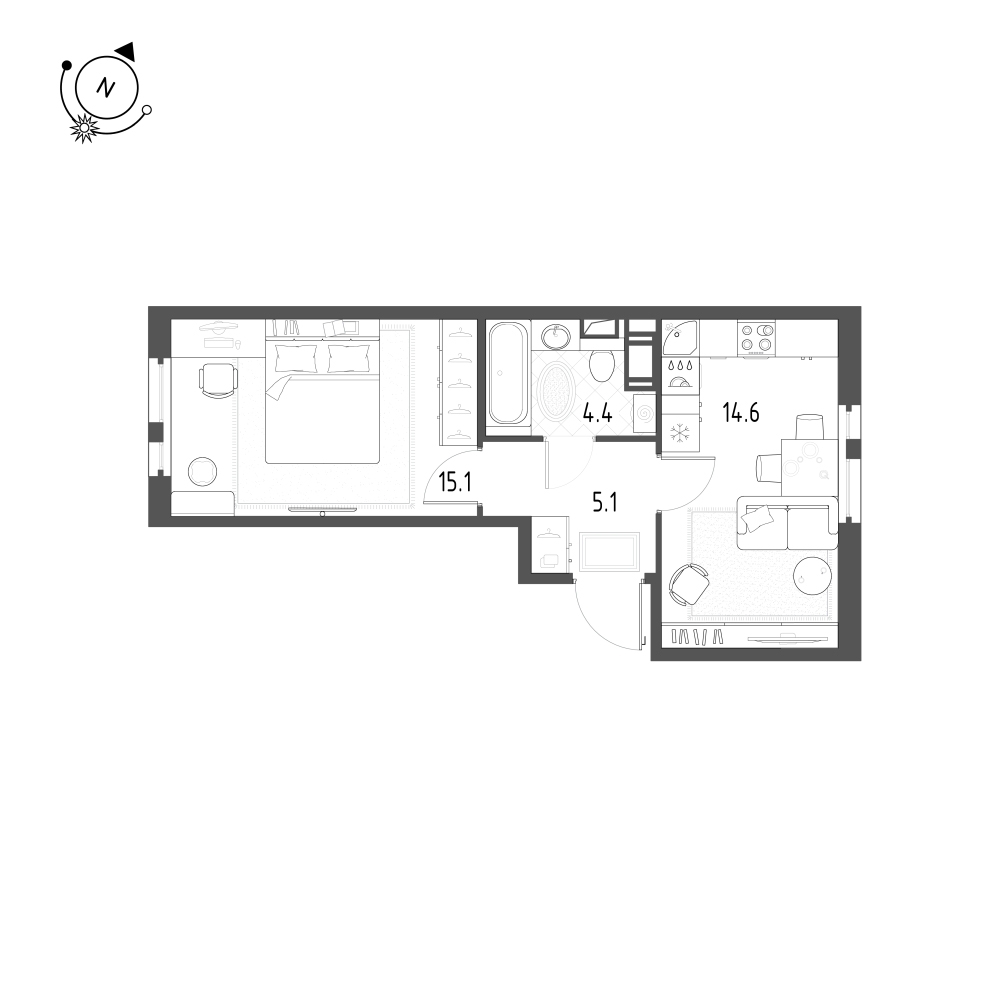 Однокомнатные квартиры (3 квартиры, 3 планировки)