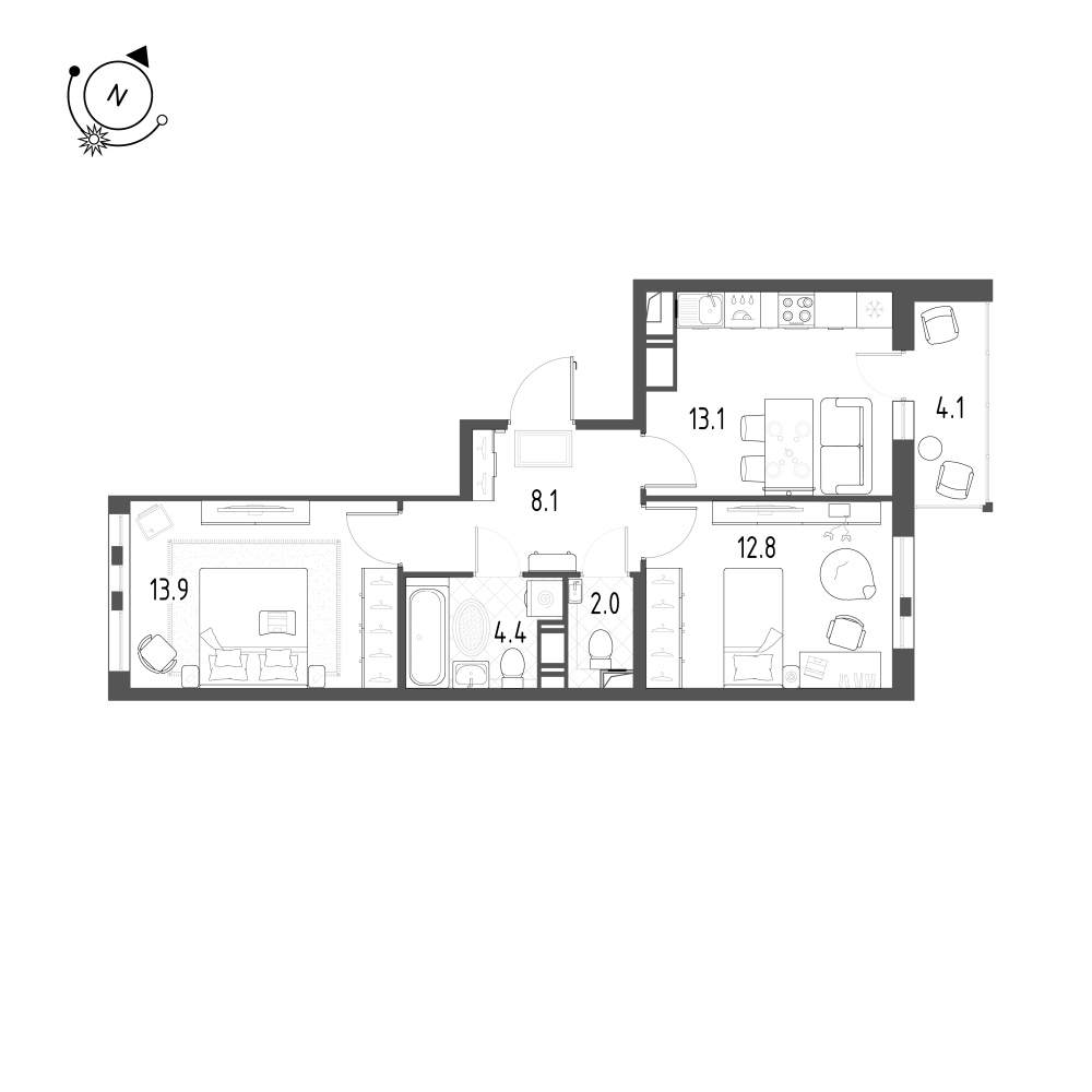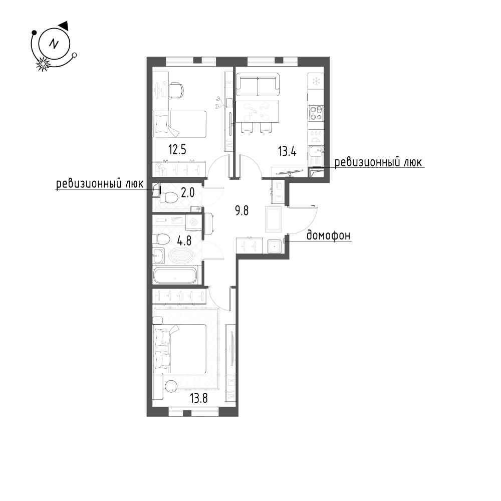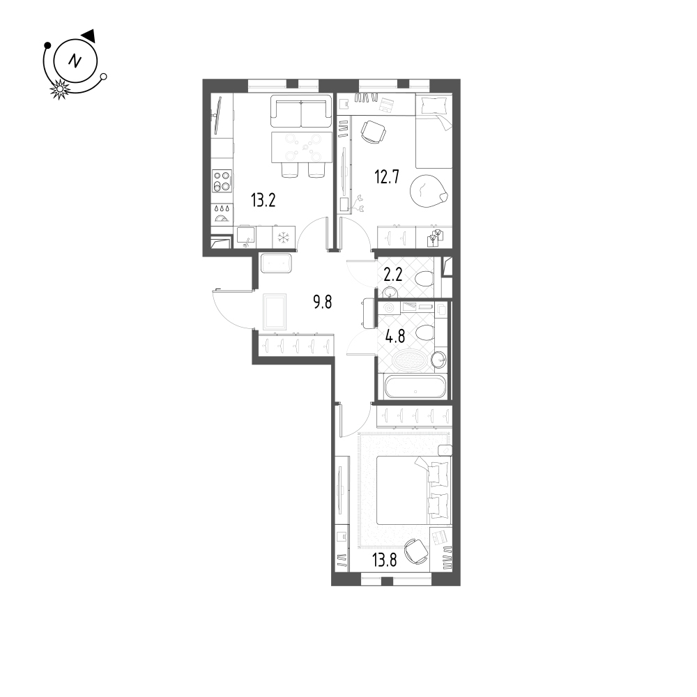 Двухкомнатные квартиры (2 квартиры, 2 планировки)