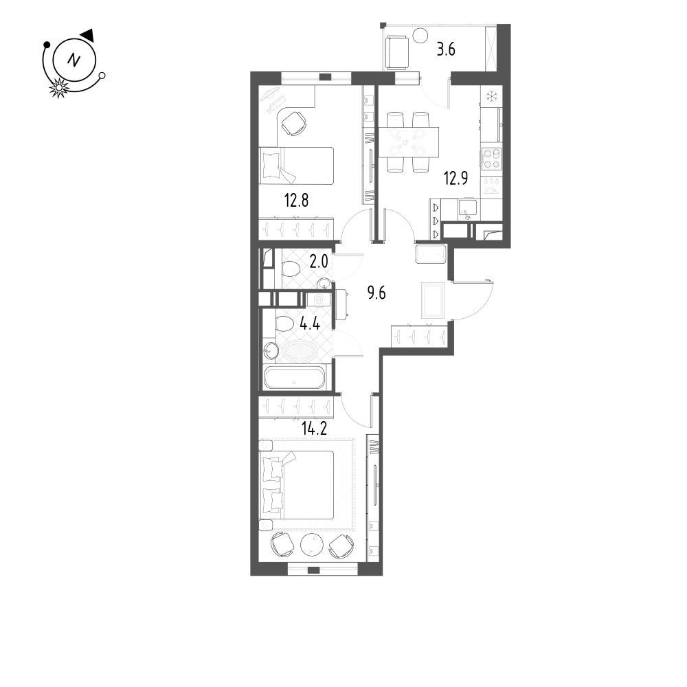 Трехкомнатные квартиры (2 квартиры, 2 планировки)