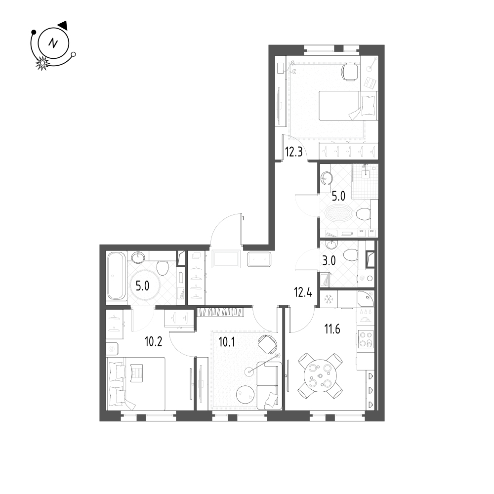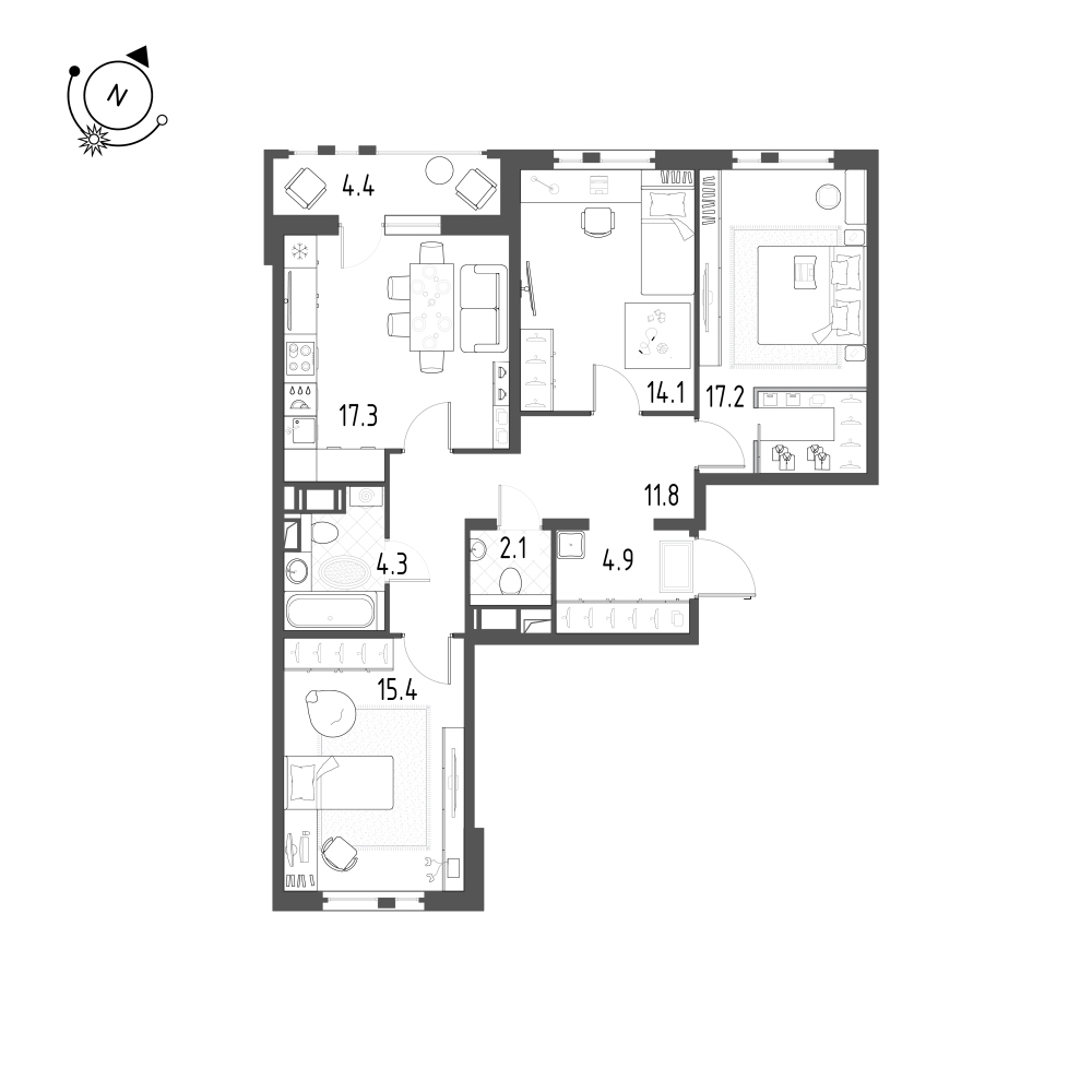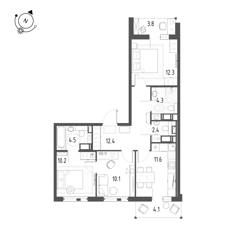 Трехкомнатные квартиры (3 квартиры, 3 планировки)