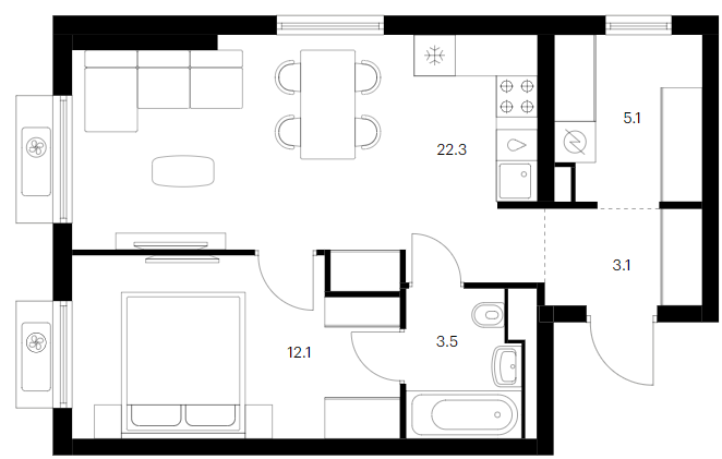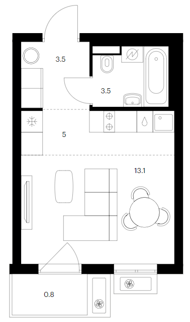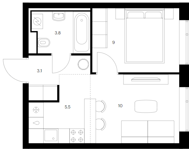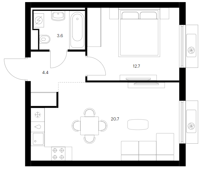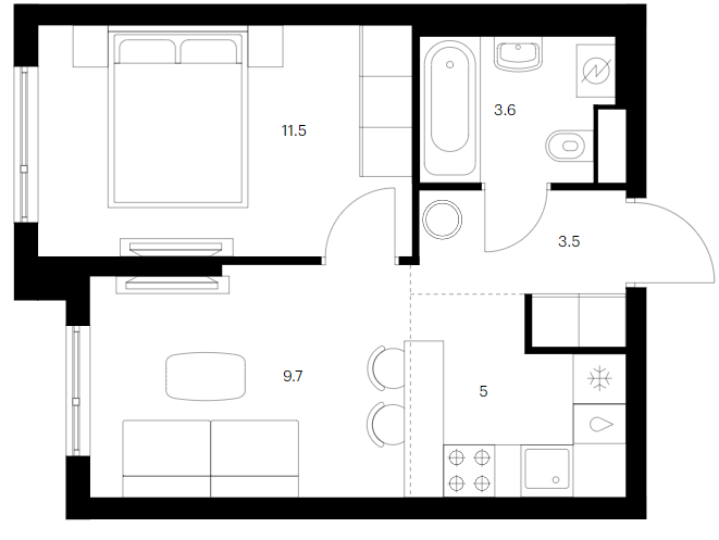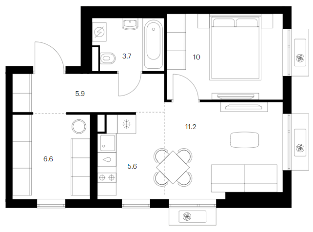 Однокомнатные квартиры (6 квартир, 6 планировок)