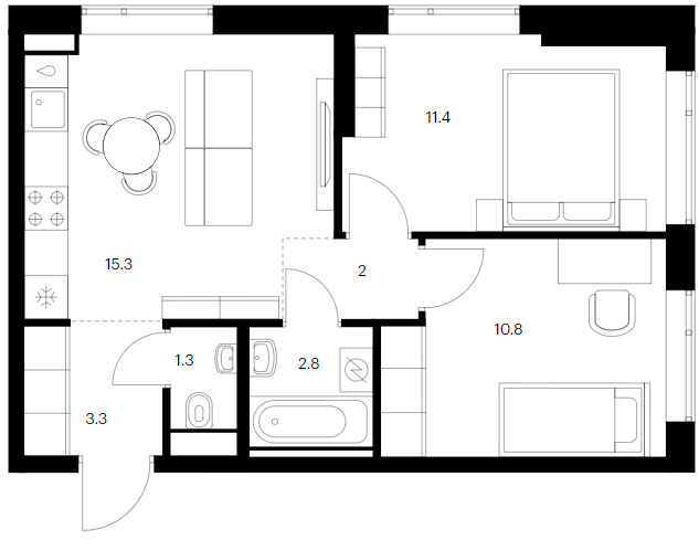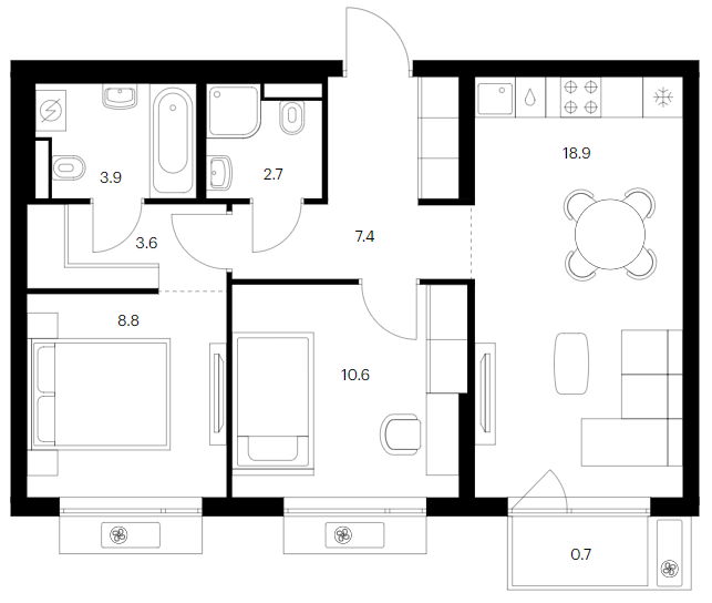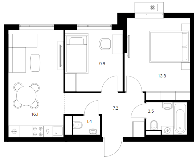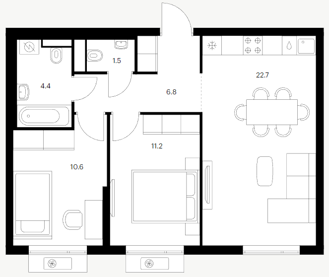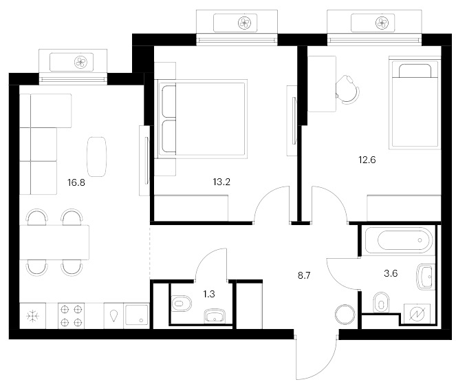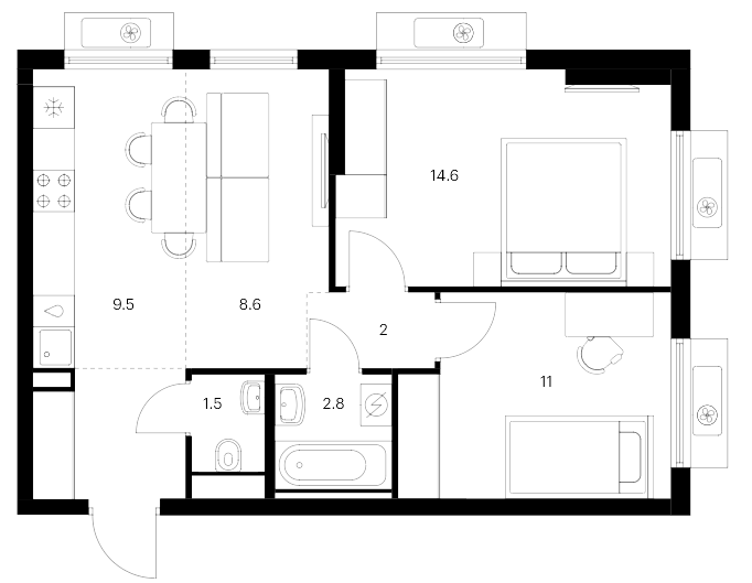 Двухкомнатные квартиры (6 квартир, 6 планировок)