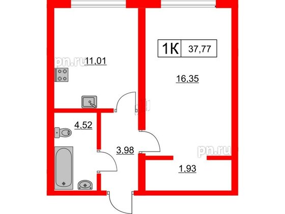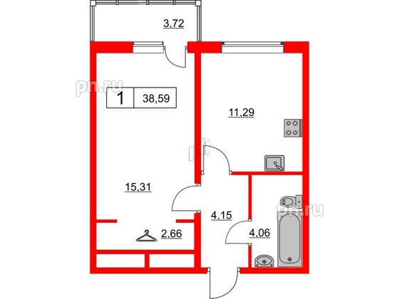 Однокомнатные квартиры (11 квартир, 11 планировок)
