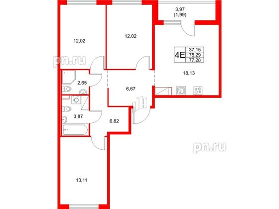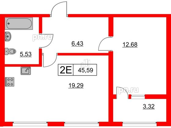 Двухкомнатные квартиры (3 квартиры, 3 планировки)