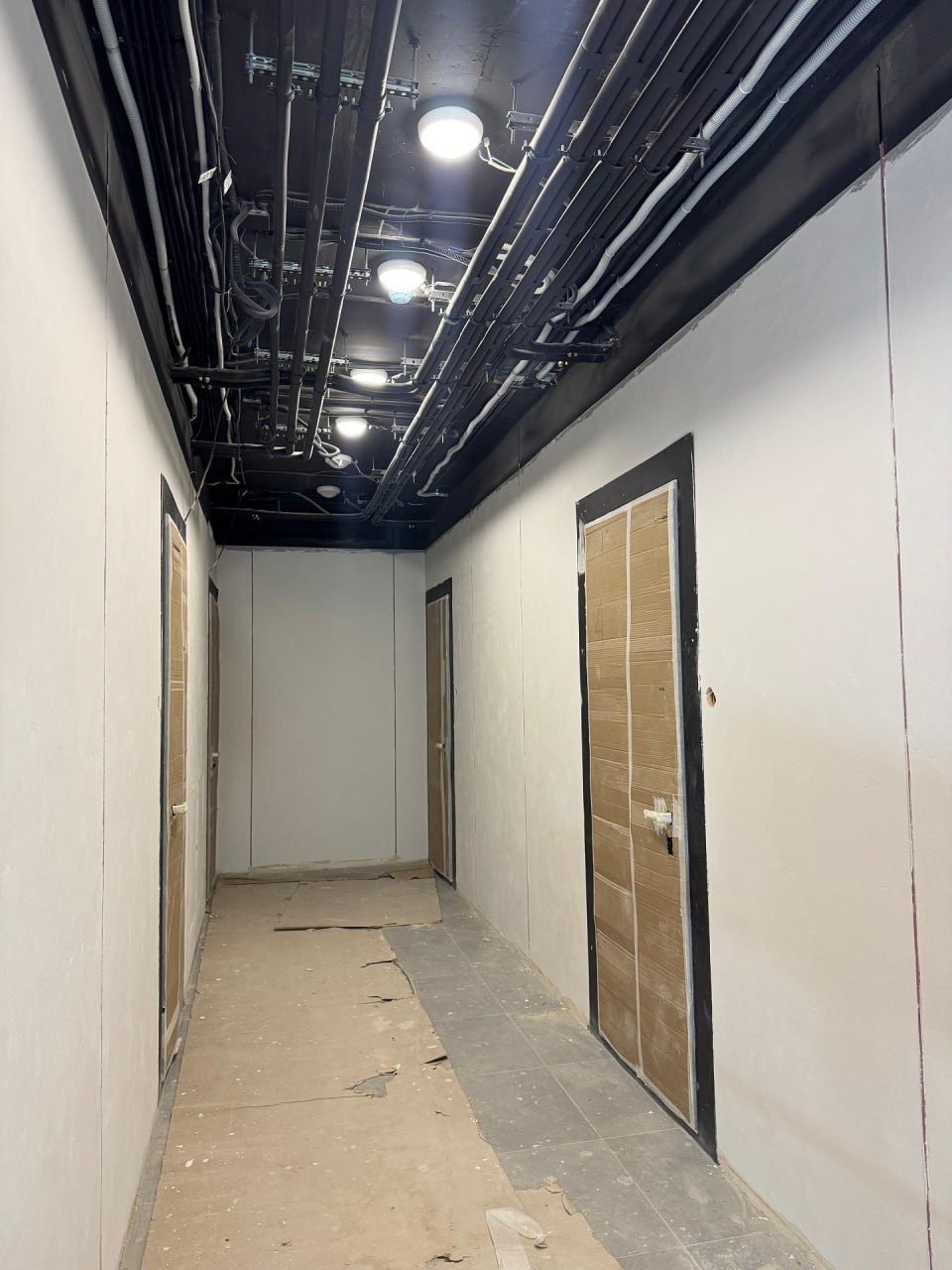Фото от риелтора, сделаны в двадцатых числах сентября. Итого: инженерка на потолке разведена, пол уложен, по стенам чистовая готова.