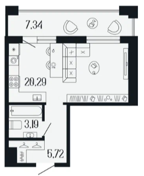 Однокомнатные квартиры (3 квартиры, 3 планировки)