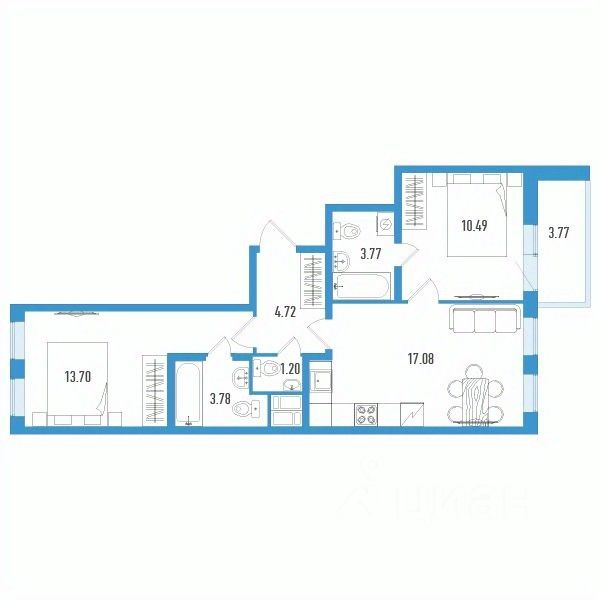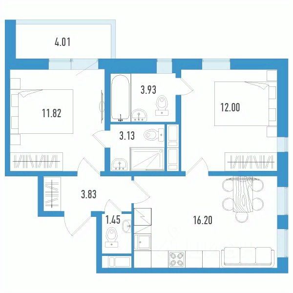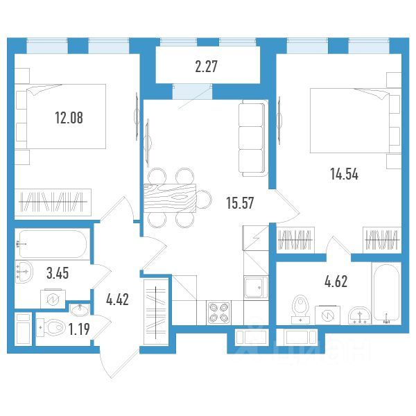 Двухкомнатные квартиры (3 квартиры, 3 планировки)