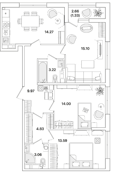 Срок сдачи 3 кв 2025 - от 7 083 583 a за студию Апартаменты "ZOOM Чёрная Речка"