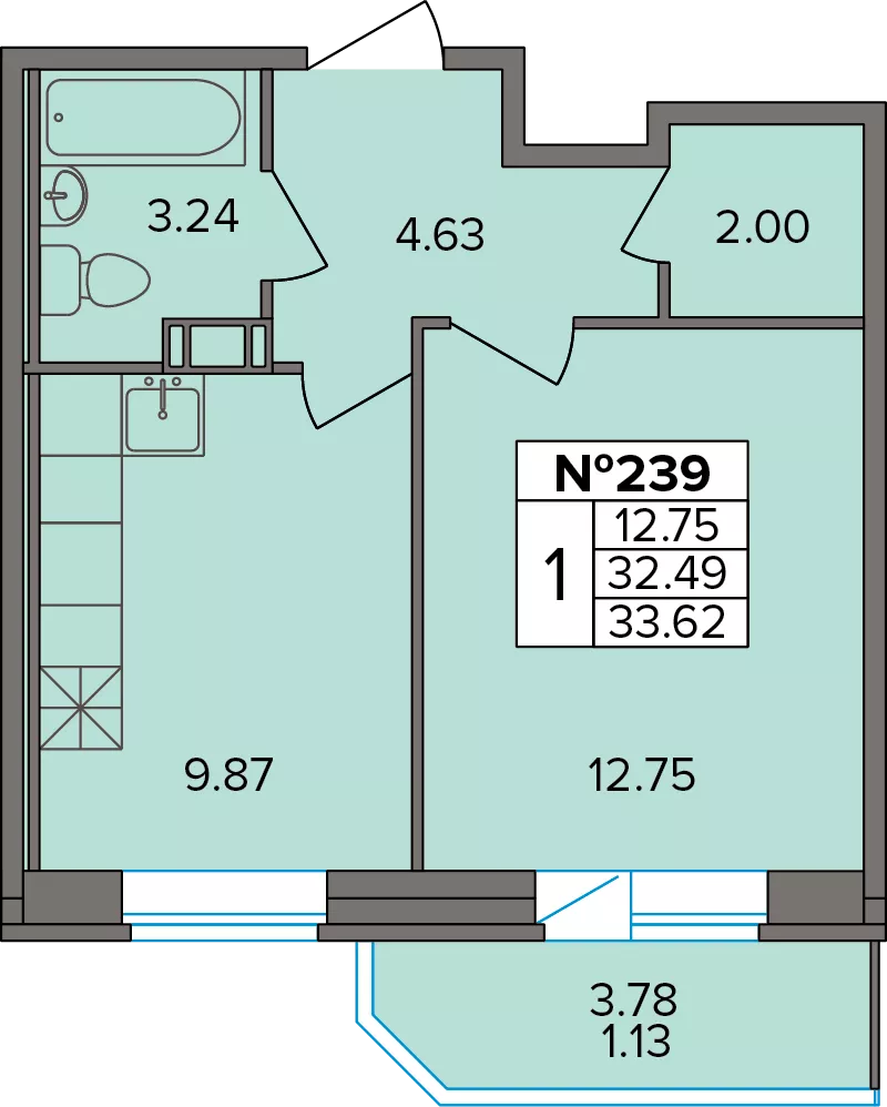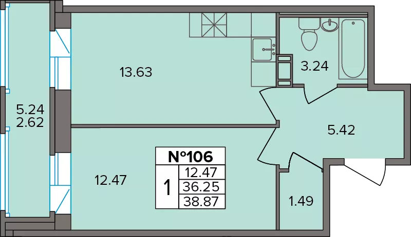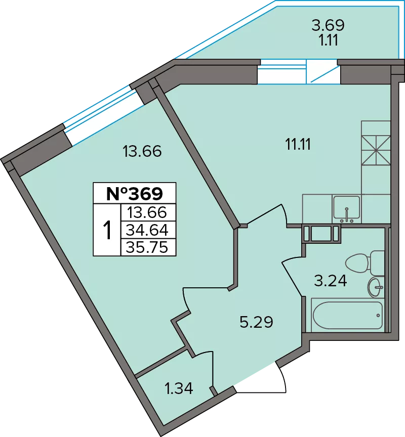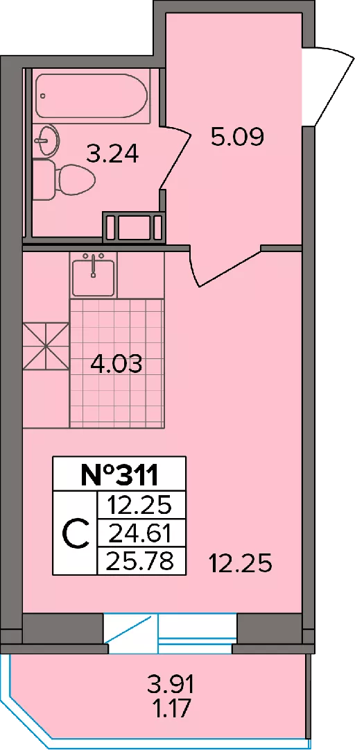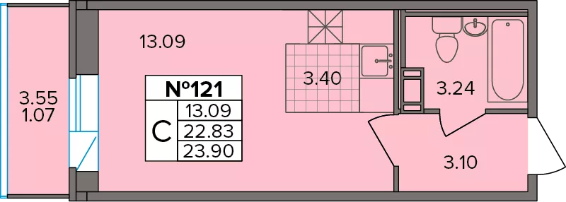 Студия (22 квартиры, 12 планировок)