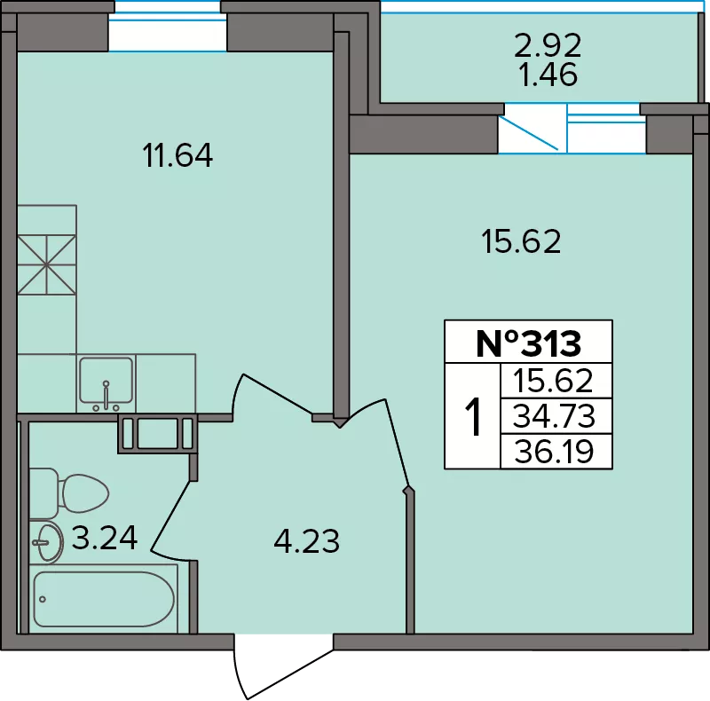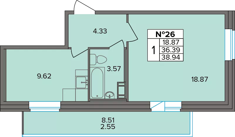 Однокомнатные квартиры (51 квартира, 30 планировок)