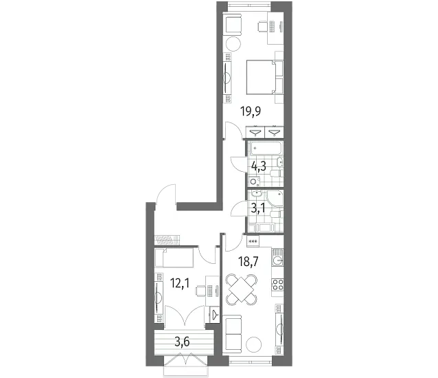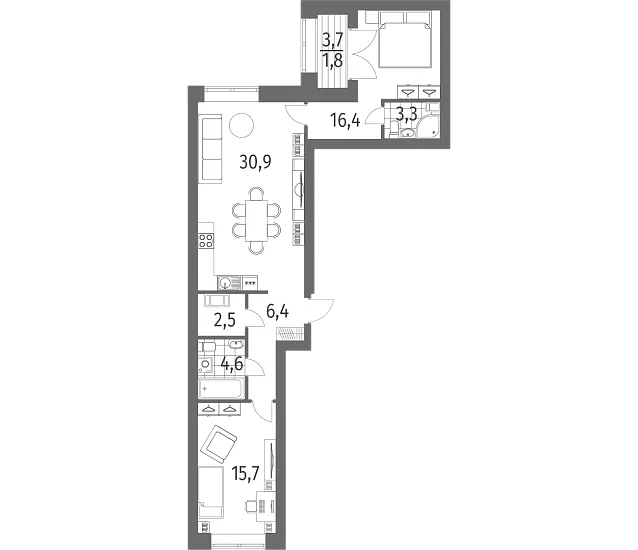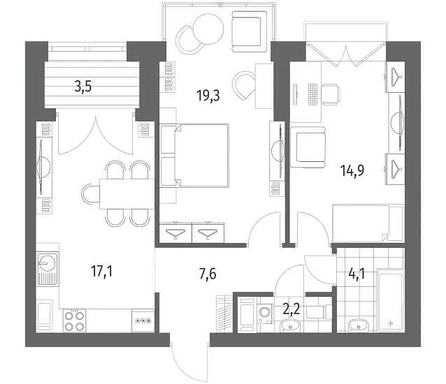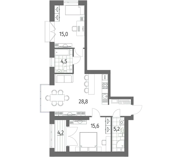 Двухкомнатные квартиры (15 квартир, 15 планировок)