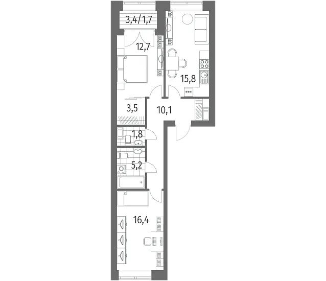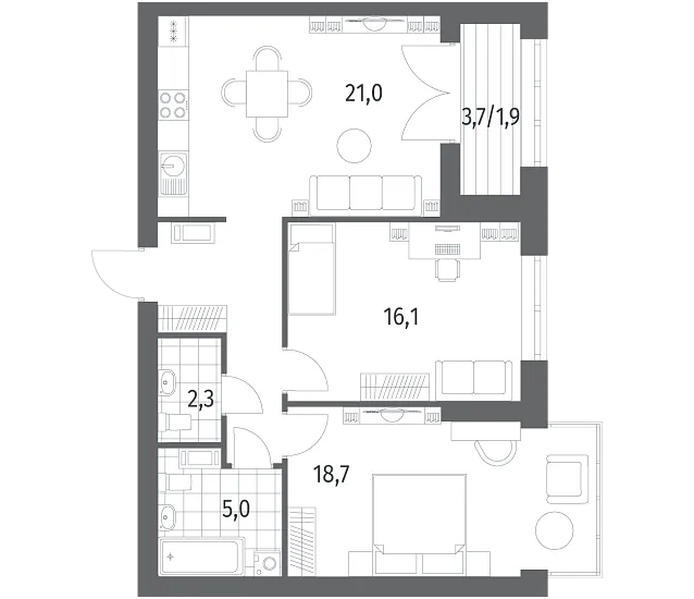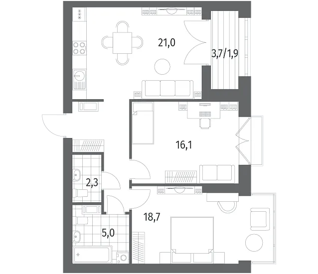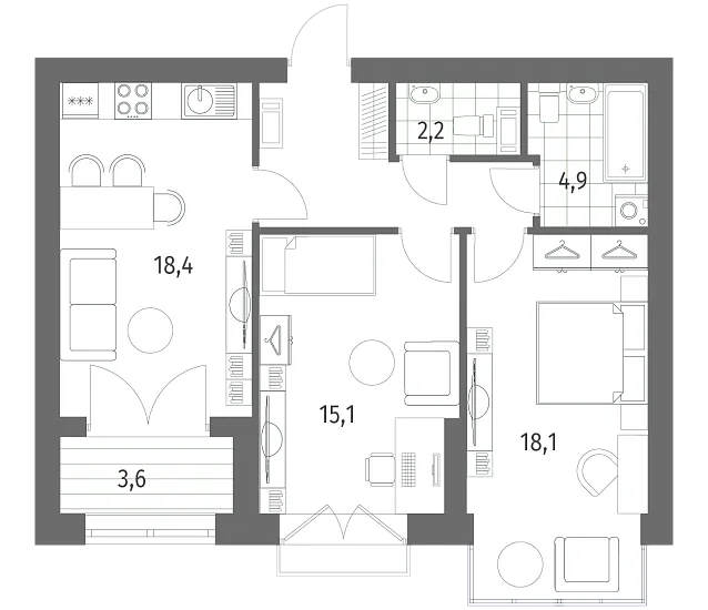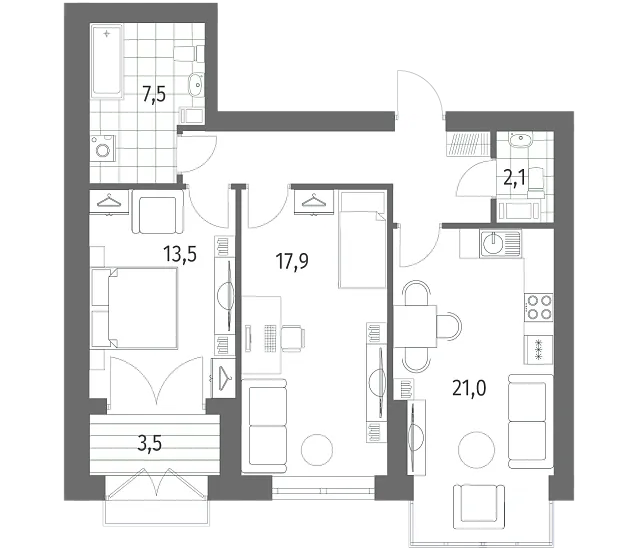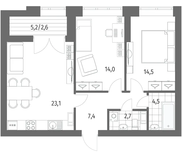 Двухкомнатные квартиры (14 квартир, 14 планировок)