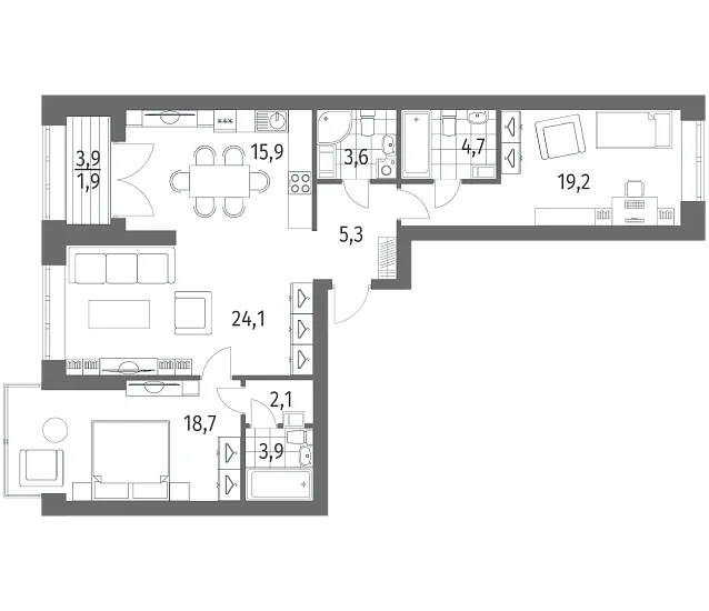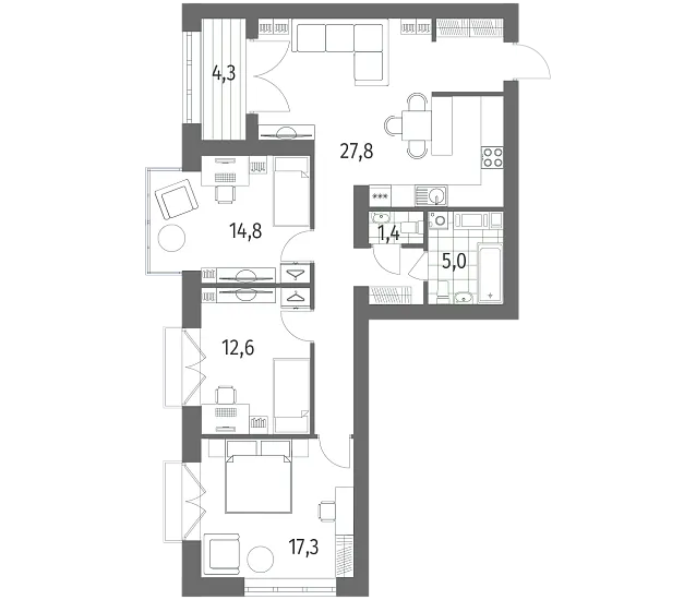 Трехкомнатные квартиры (13 квартир, 13 планировок)