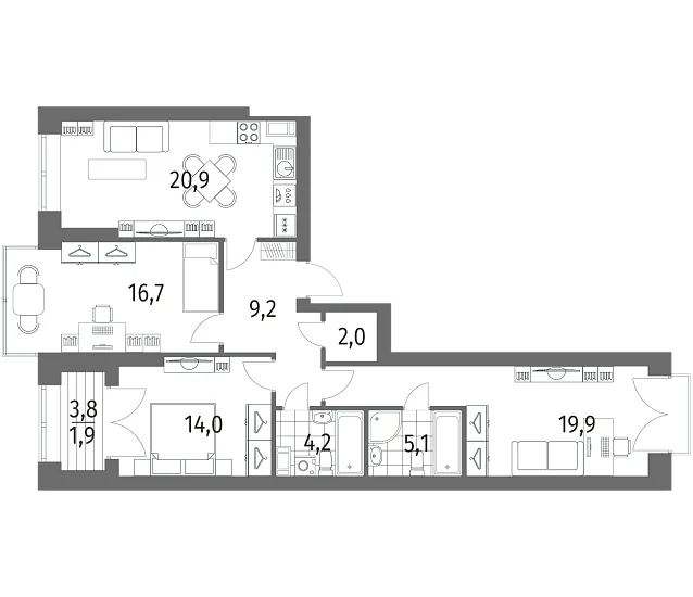 В девяти корпусах запланировано 2027 квартир, планировки представлены одно-, двух- и трехкомнатными вариантами, студий не будет. Строительство ведется в три очереди, первыми возведут 1 и 9 корпуса, на 610 и 592 квартиры соответственно. Площадь жилья варьируется от 39 кв.м. до 105 кв.м. Высота потолка 2,7 м. В подземных паркингах первой очереди запланировано 230 машиномест, еще 250 автомобилей можно будет разместить на открытых парковках. Всего в комплексе будет 441 машиномест в подземных паркингах и 250 на открытых стоянках. Дворы закроют и благоустроят, разместят детские и спортивные площадки, создадут условия для перемещения маломобильных групп населения. В подъездах разместят колясочные, на первом этаже откроют коммерческие помещения.