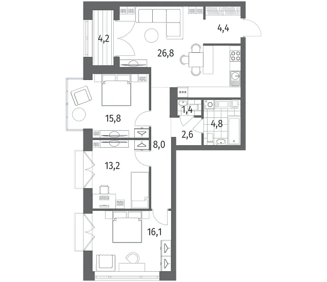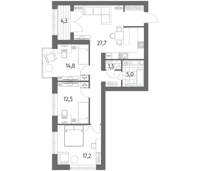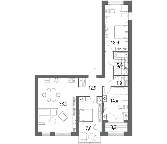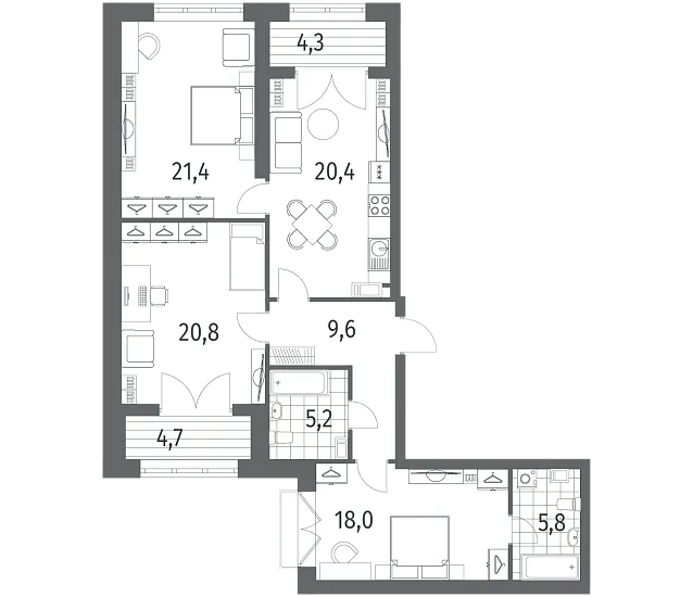 Трехкомнатные квартиры (12 квартир, 12 планировок)