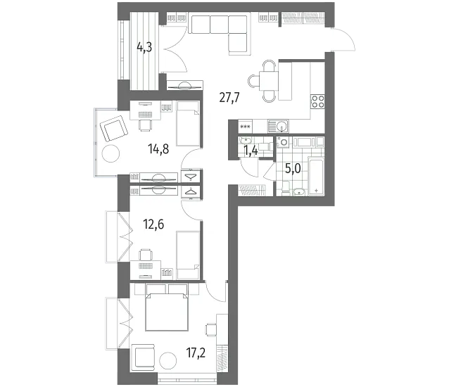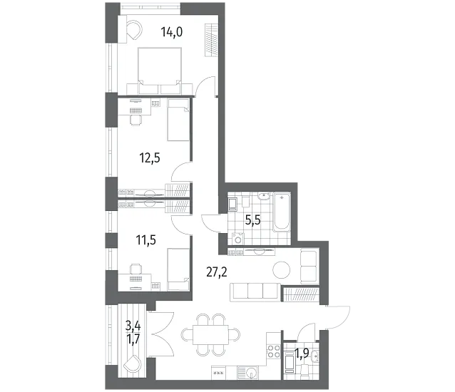 Трехкомнатные квартиры (11 квартир, 11 планировок)