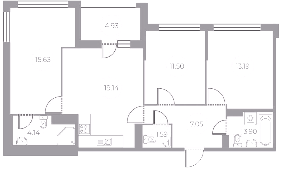 Трехкомнатные квартиры (8 квартир, 5 планировок)