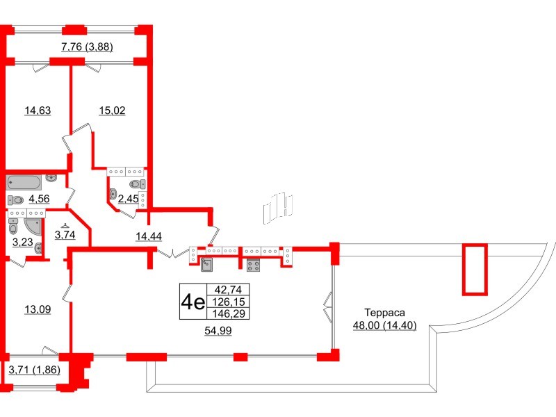 Трехкомнатные квартиры (1 квартира, 1 планировка)