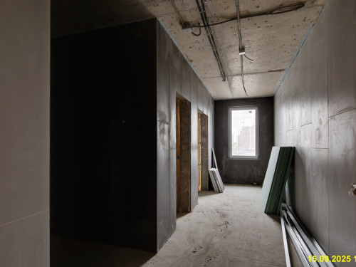 - Устройство стяжки в квартирах и местах общего пользования, 2 секция, 10-15 этажи 90%.