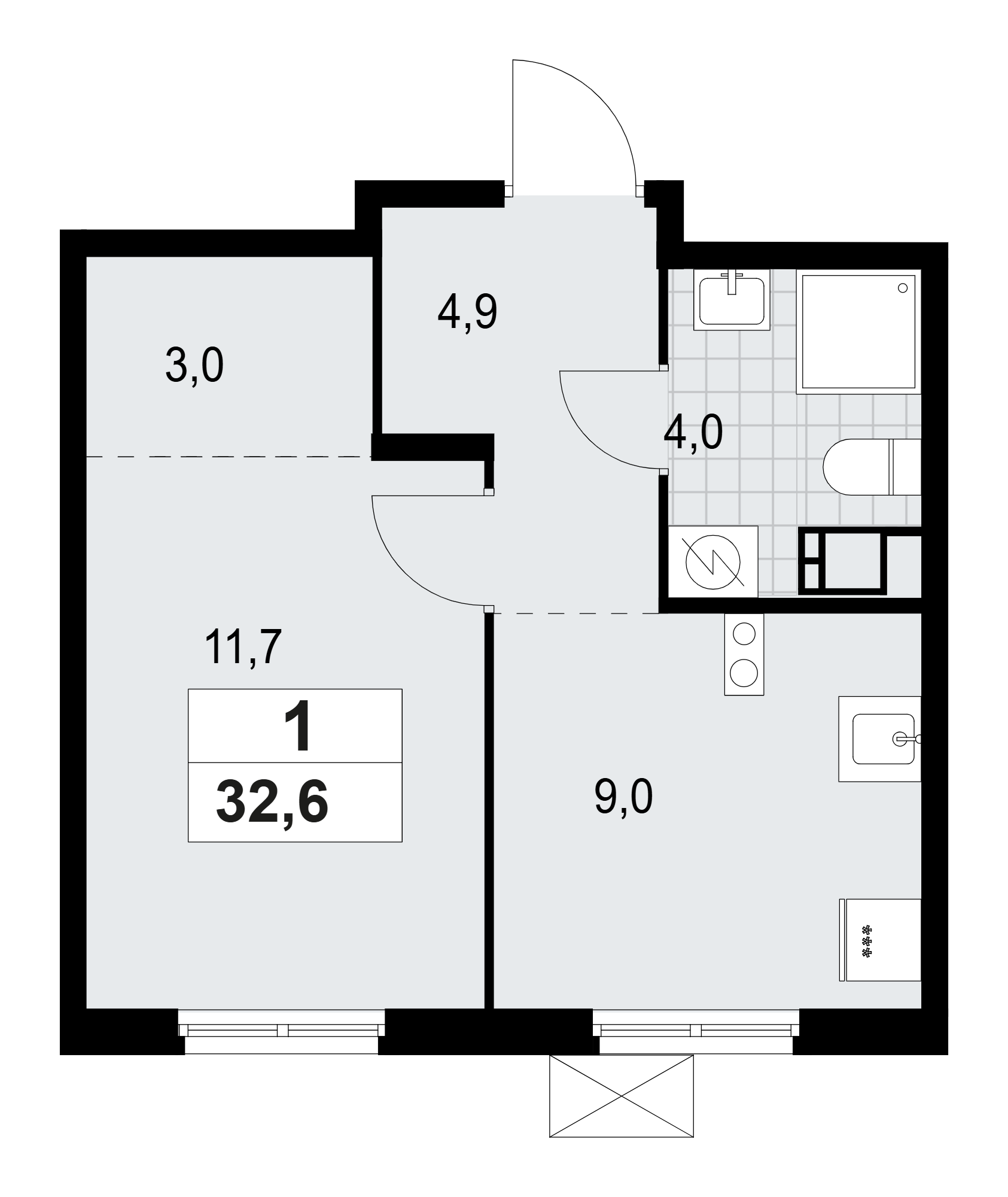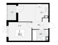 Однокомнатные квартиры (11 квартир, 10 планировок)