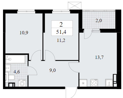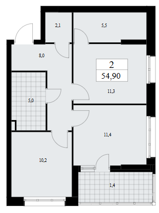 Двухкомнатные квартиры (11 квартир, 11 планировок)