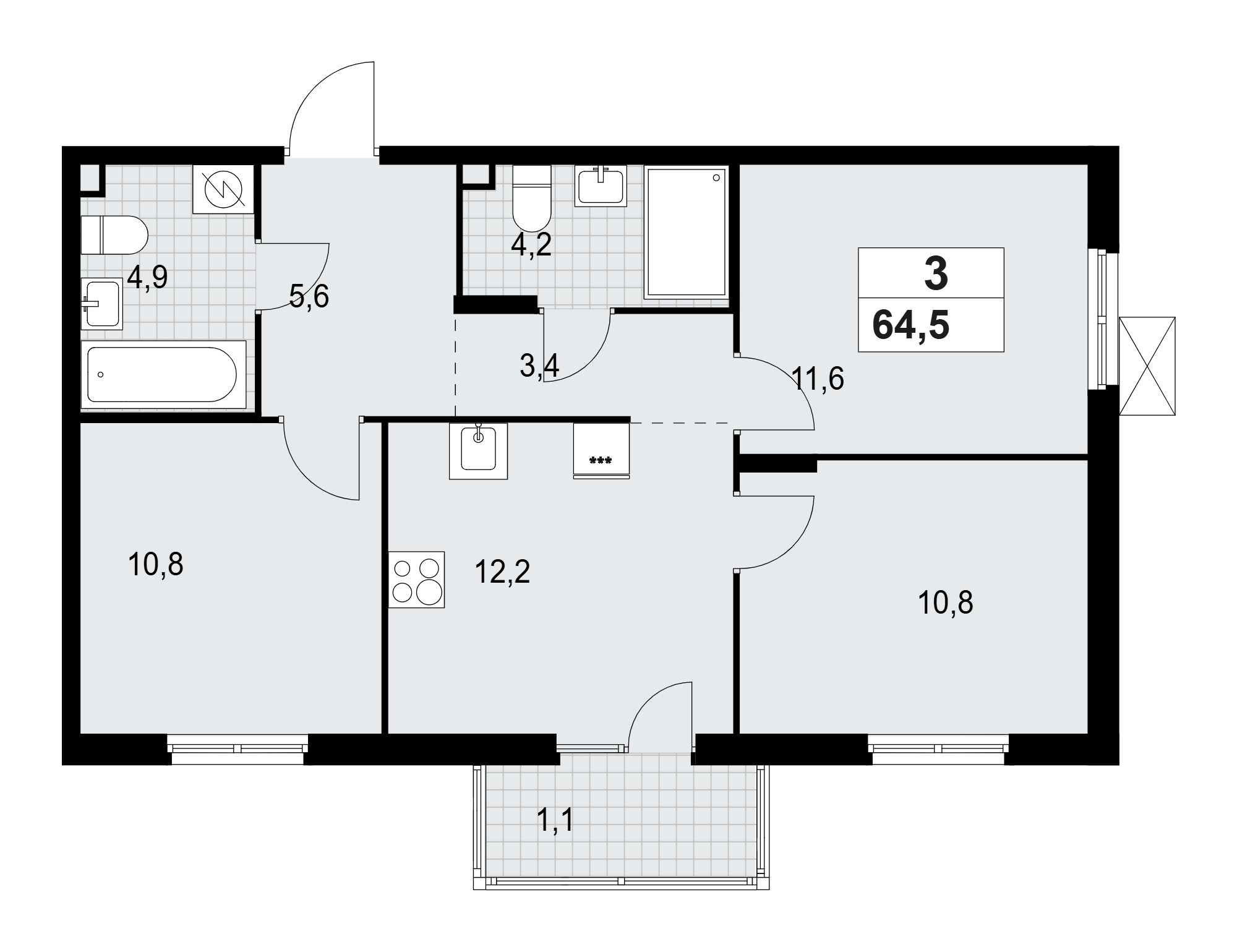 Трехкомнатные квартиры (7 квартир, 7 планировок)