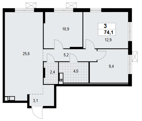 Трехкомнатные квартиры (6 квартир, 6 планировок)