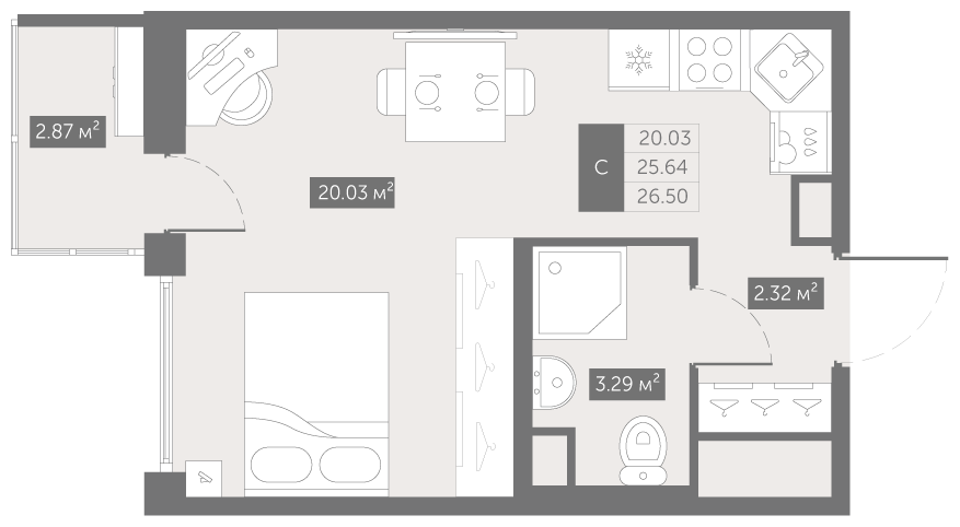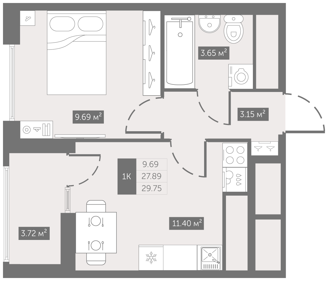 Однокомнатные квартиры (8 квартир, 7 планировок)