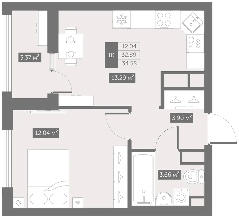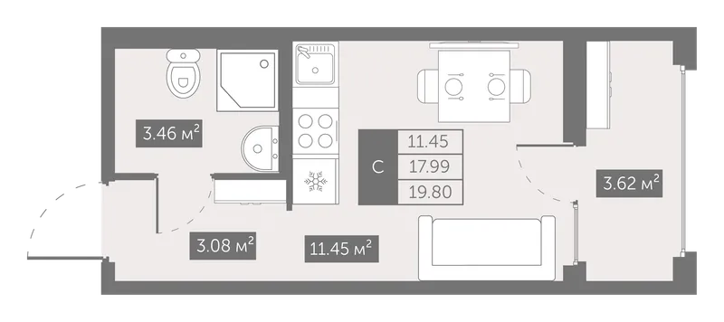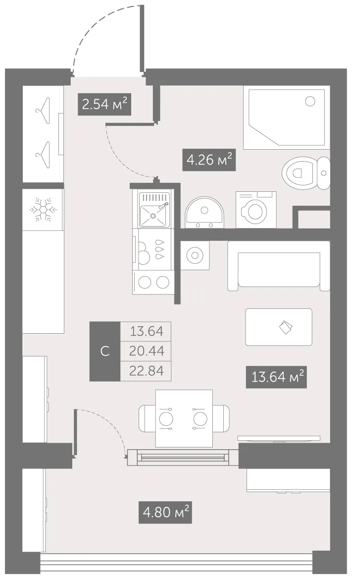 Однокомнатные квартиры (12 квартир, 12 планировок)