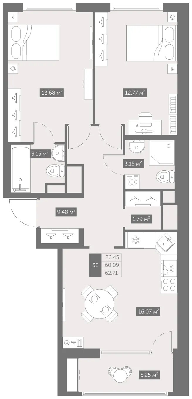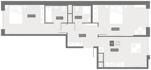 Двухкомнатные квартиры (16 квартир, 16 планировок)
